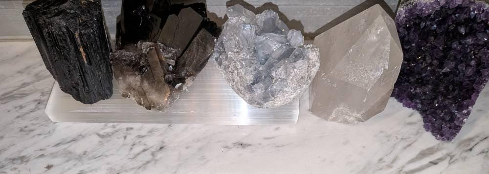 Selenite does not retain negative energies and does not have to be cleared. It is a stone of protection. Selenite constantly recharges itself, so you never have to worry about cleansing it or recharging it.