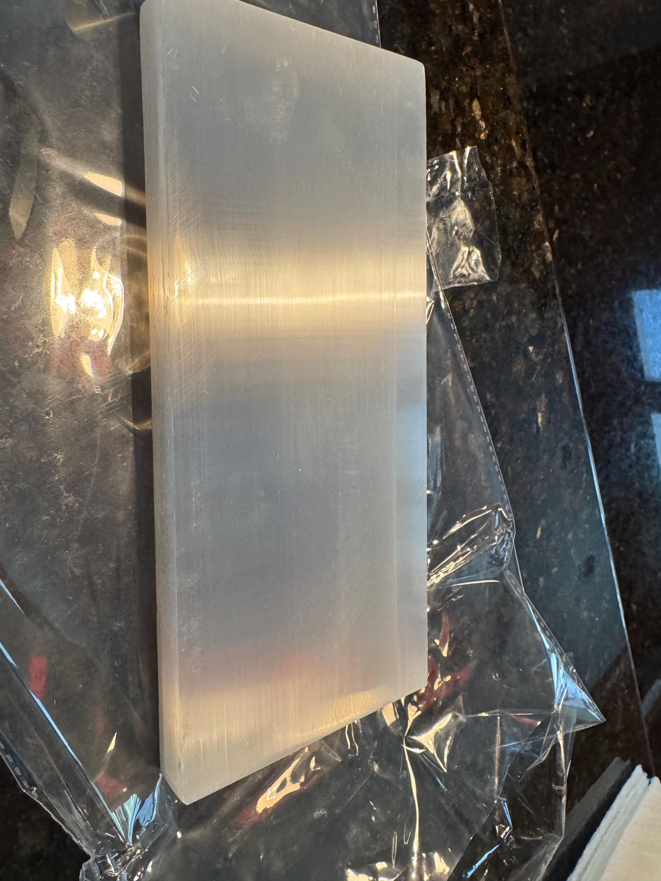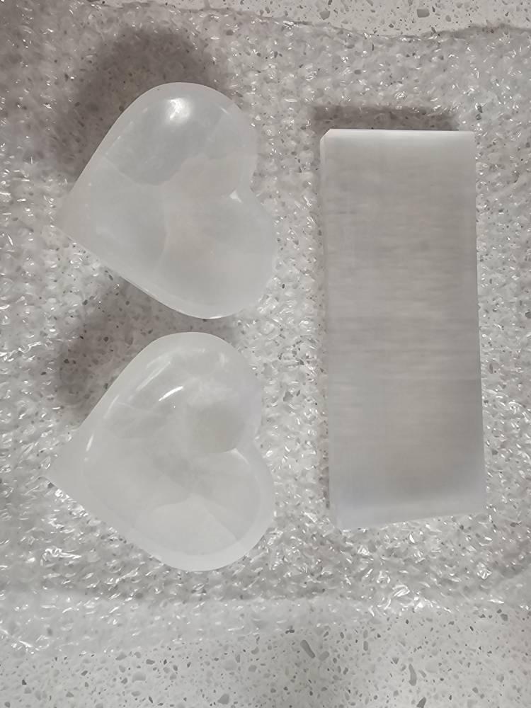 Selenite plates are widely used in the crystal community as display and arrangement surfaces for small objects. They are also popular additions to crystal décor, photography setups, and handmade craft presentations.