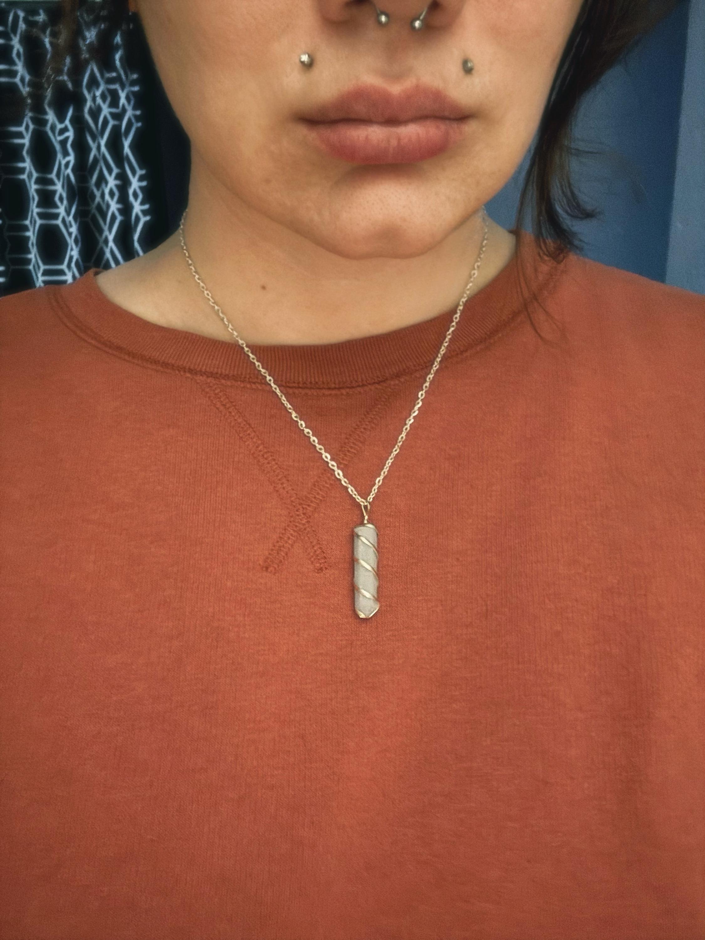 Beautiful Angelite Crystal Pendants wire wrapped in beautiful Spiral shape. These double terminated faceted pendants measures about 1 - 1.5" +/-. You can select just the pendant by itself; or add an 18" / 24" Chain. We also offer these Pendants with bulk discounts, more value as you buy more! High quality genuine gemstone crystal pendants at an unbeatable value.