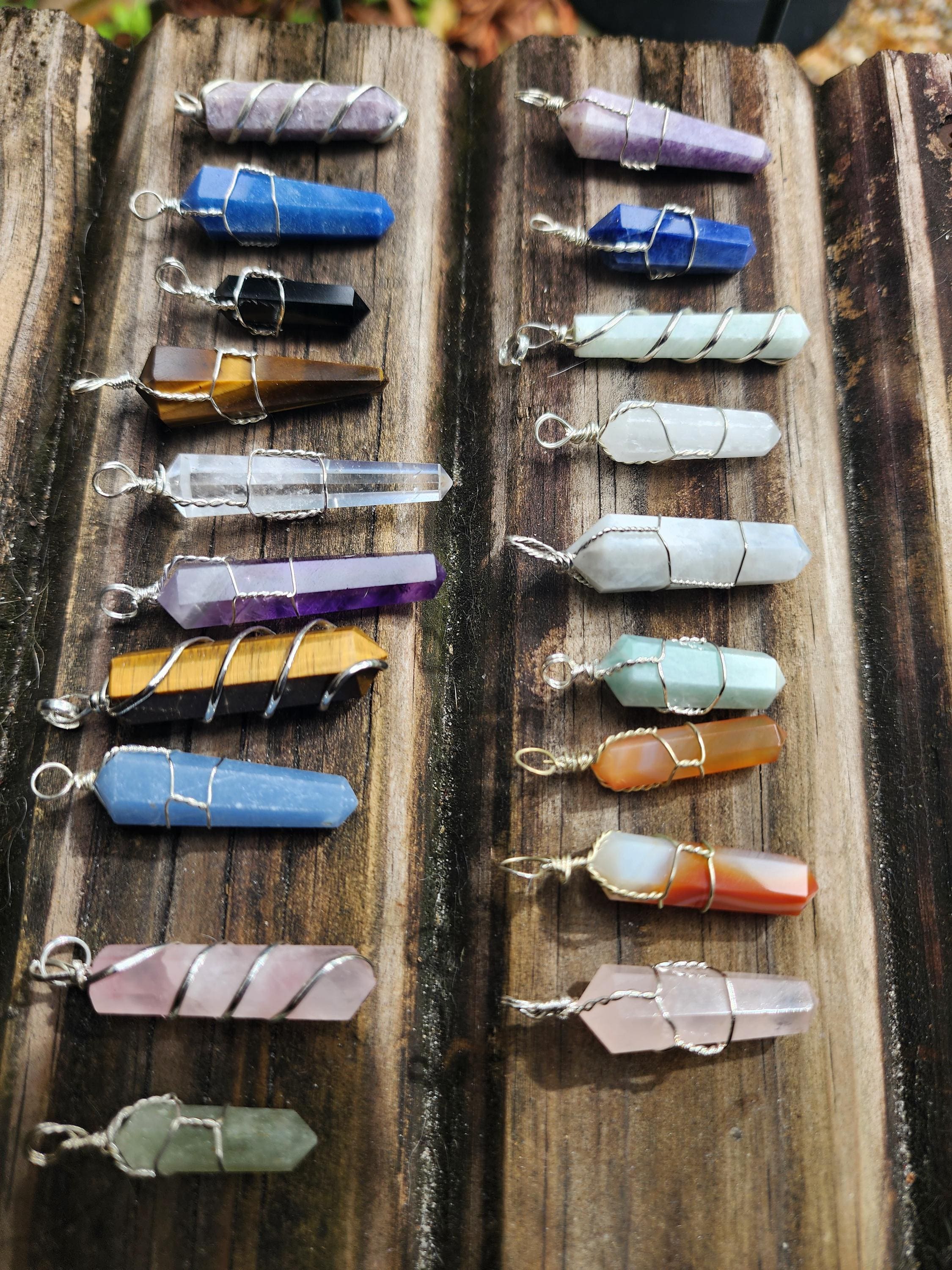 Wire - Crystal Pendants wrapped in wire. These double terminated faceted pendants measure about 1.5 - 1.75" +/-