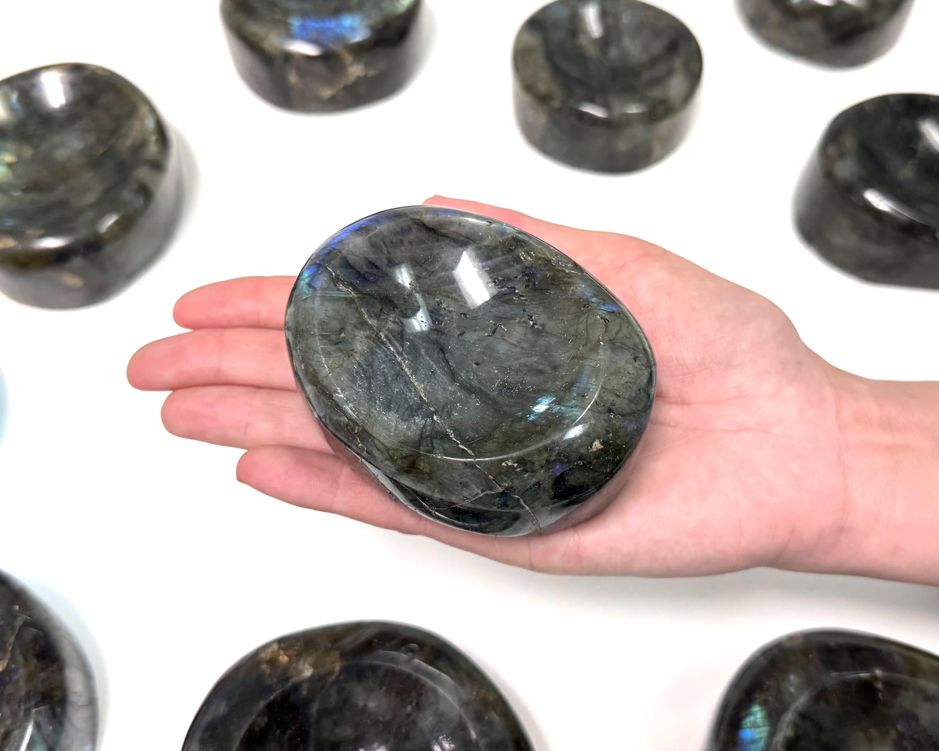 Stunning Polished Labradorite Bowls from Madagascar. Each piece is unique, wonderful Crystals with function! These Bowls are a great value and make a stunning display piece for any home. Use to hold jewelry, other crystals, or as stand beautiful alone Crystal Bowl.