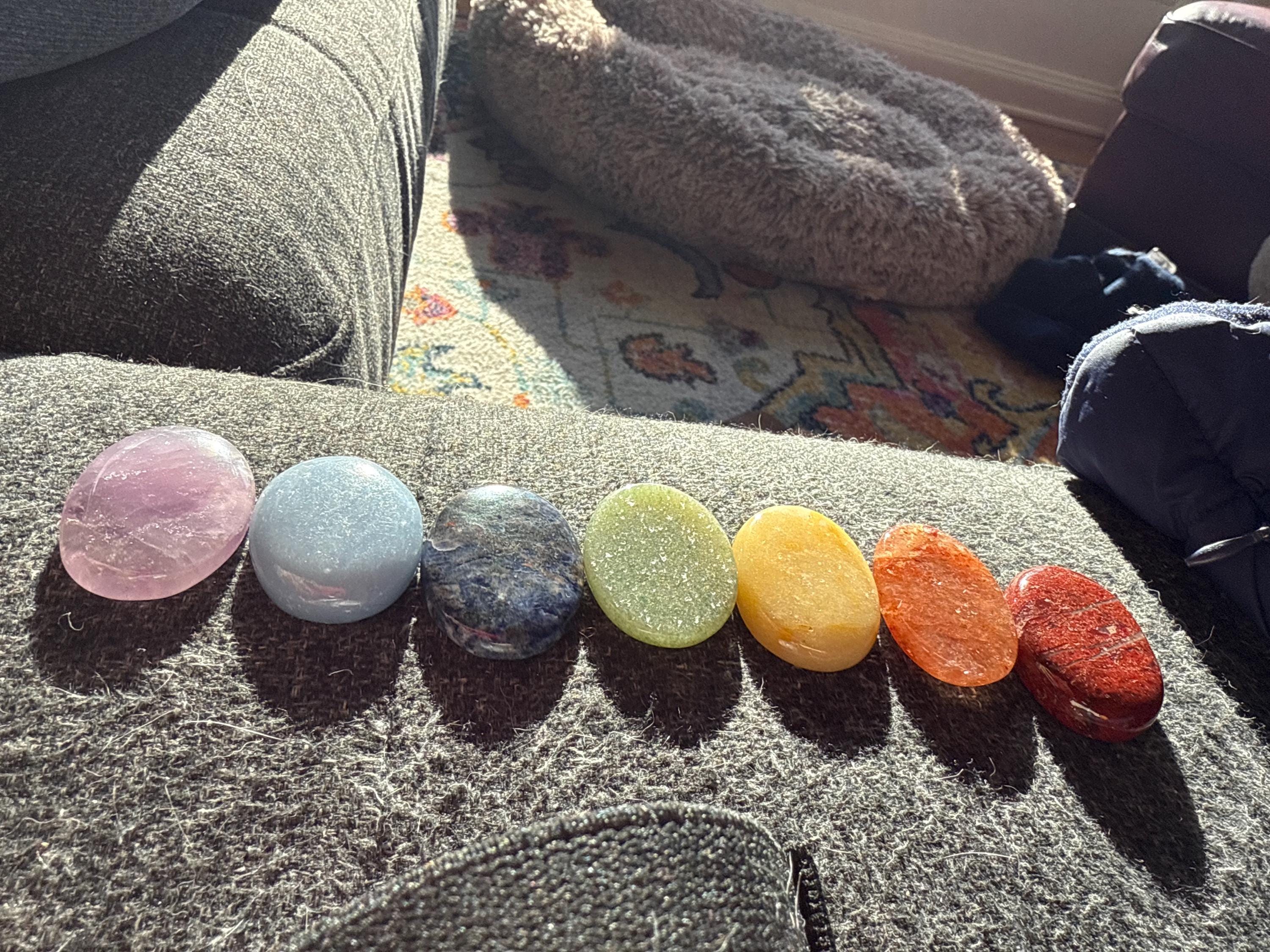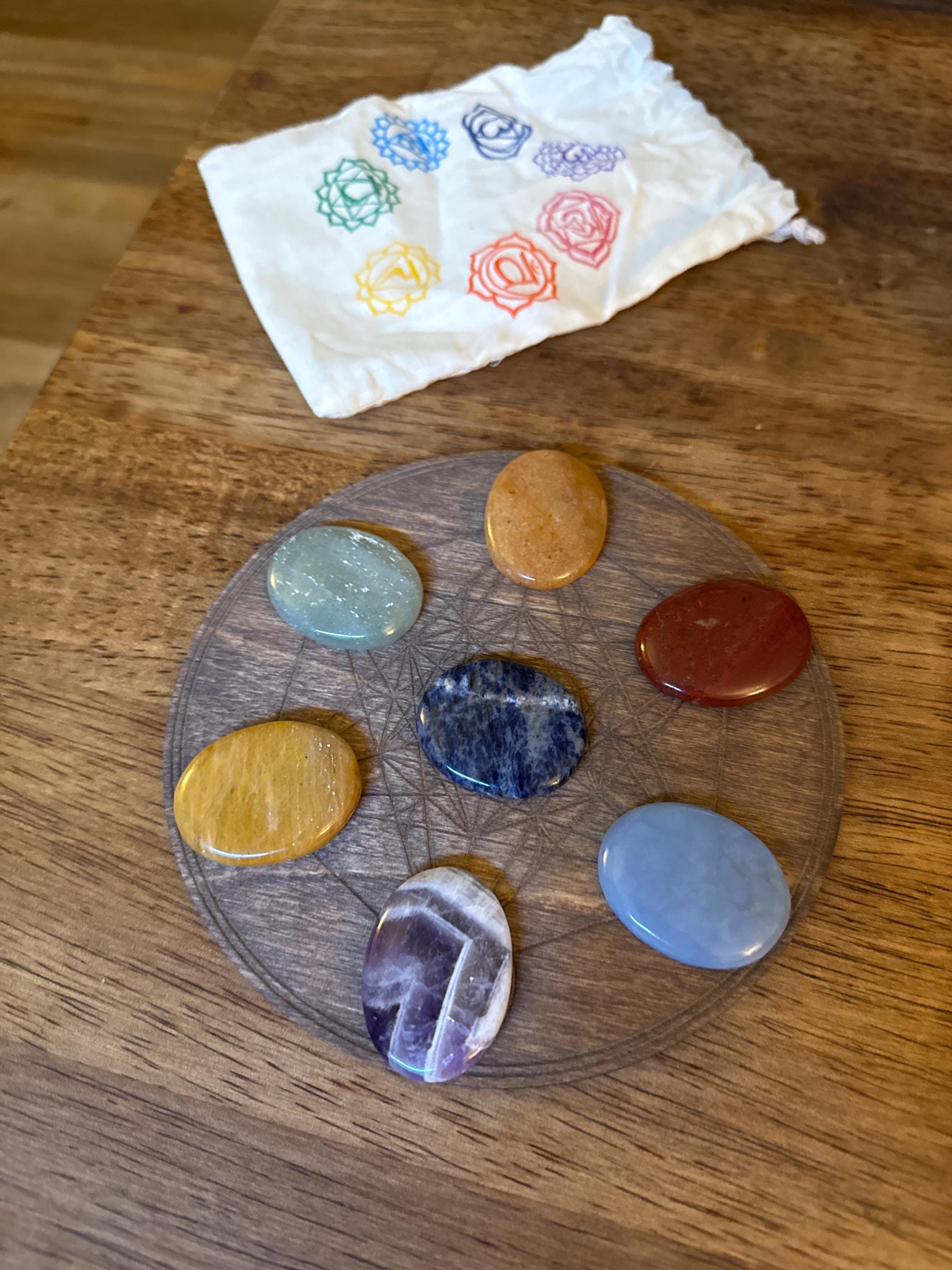 * 7 Chakra Worry / Palm Stones. Each stone is about 1" to 1.5" in size. The stones are: