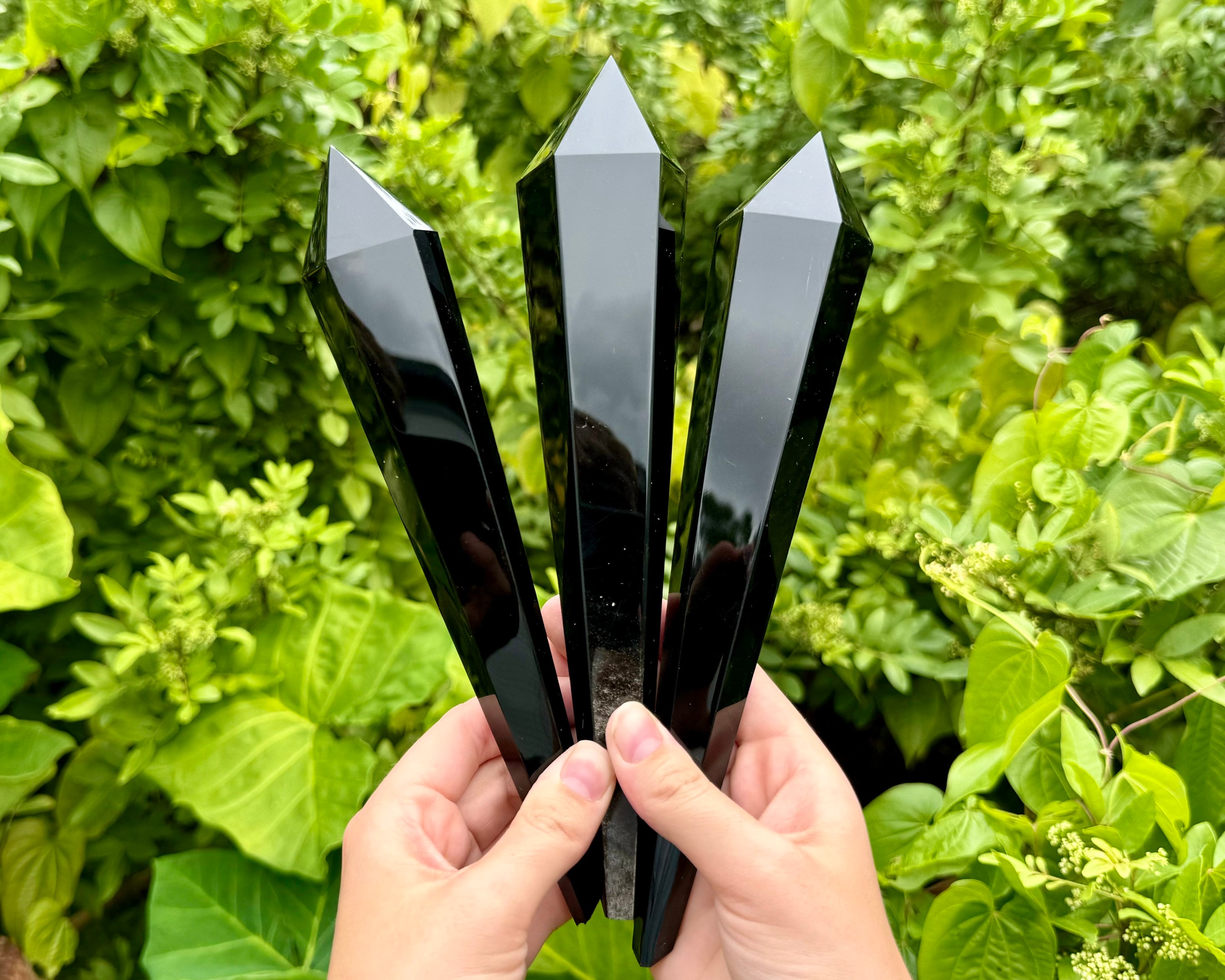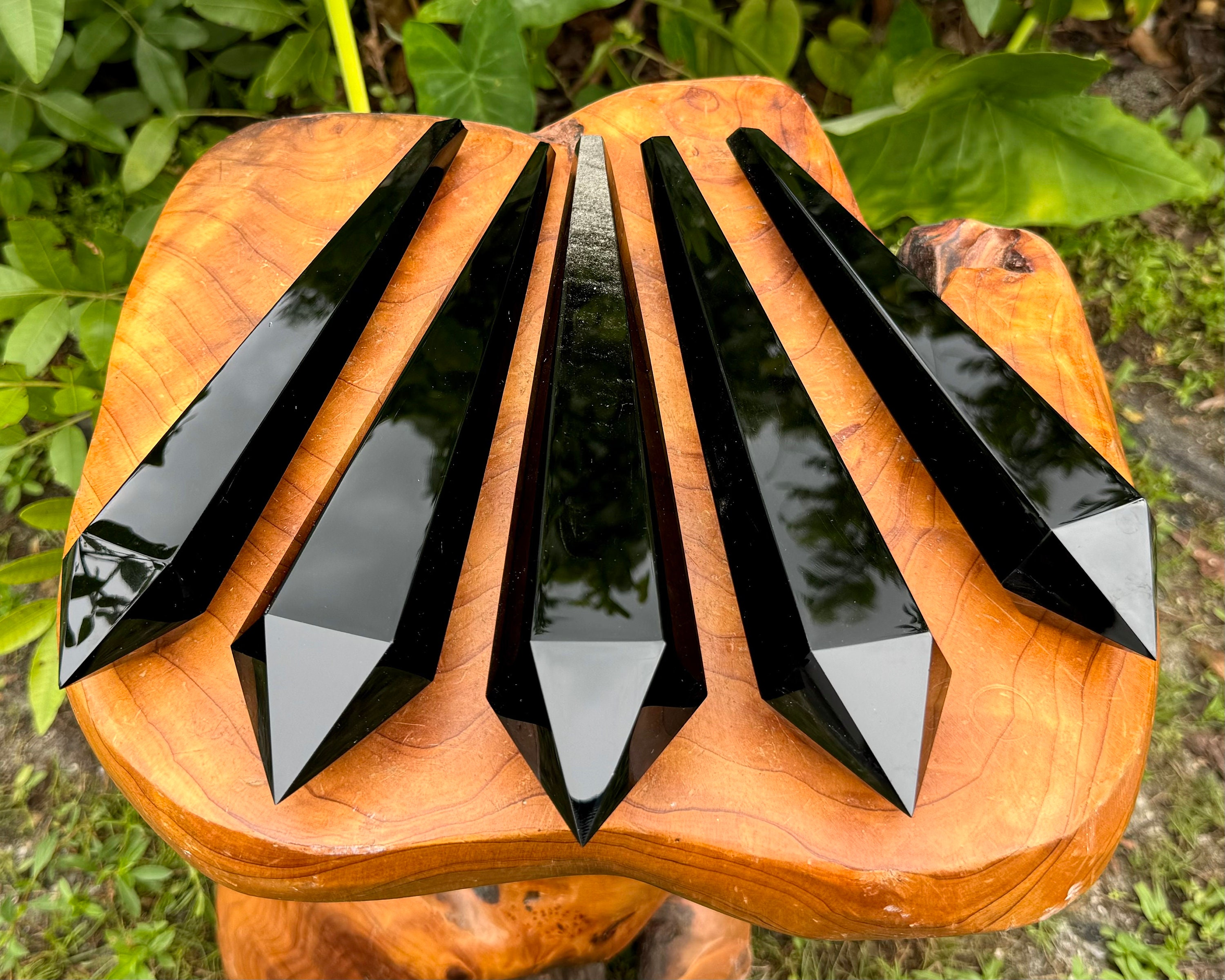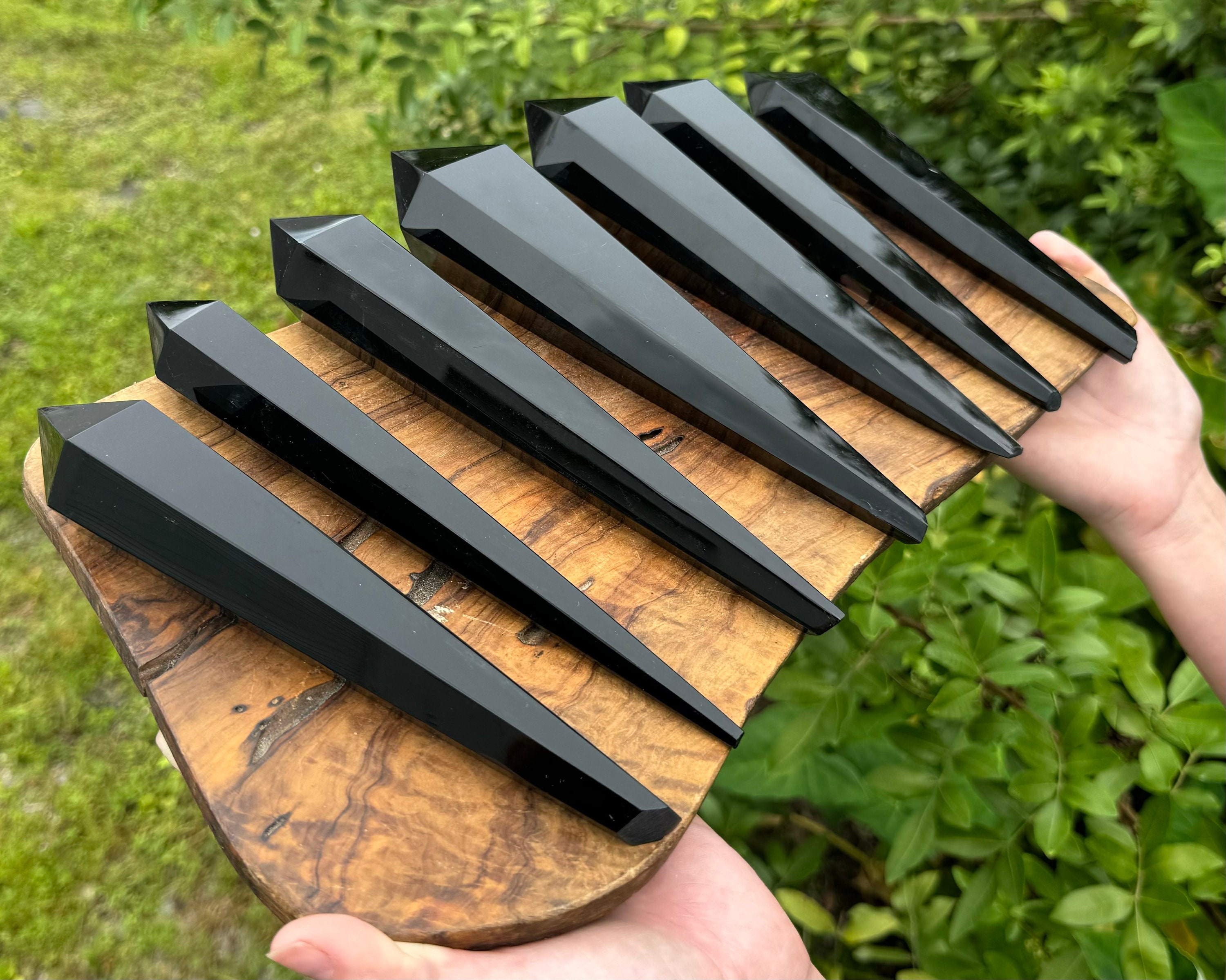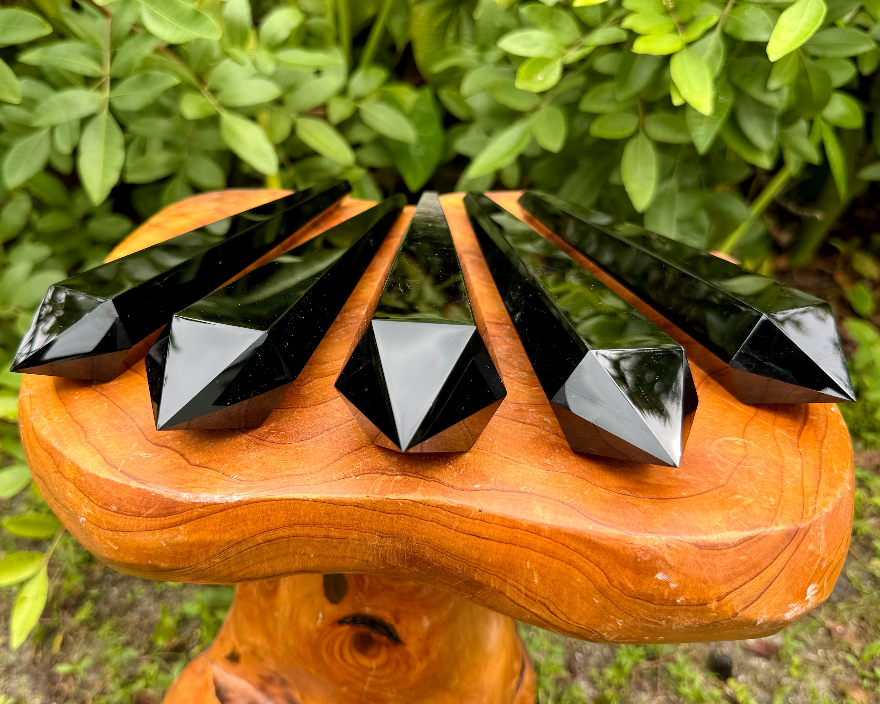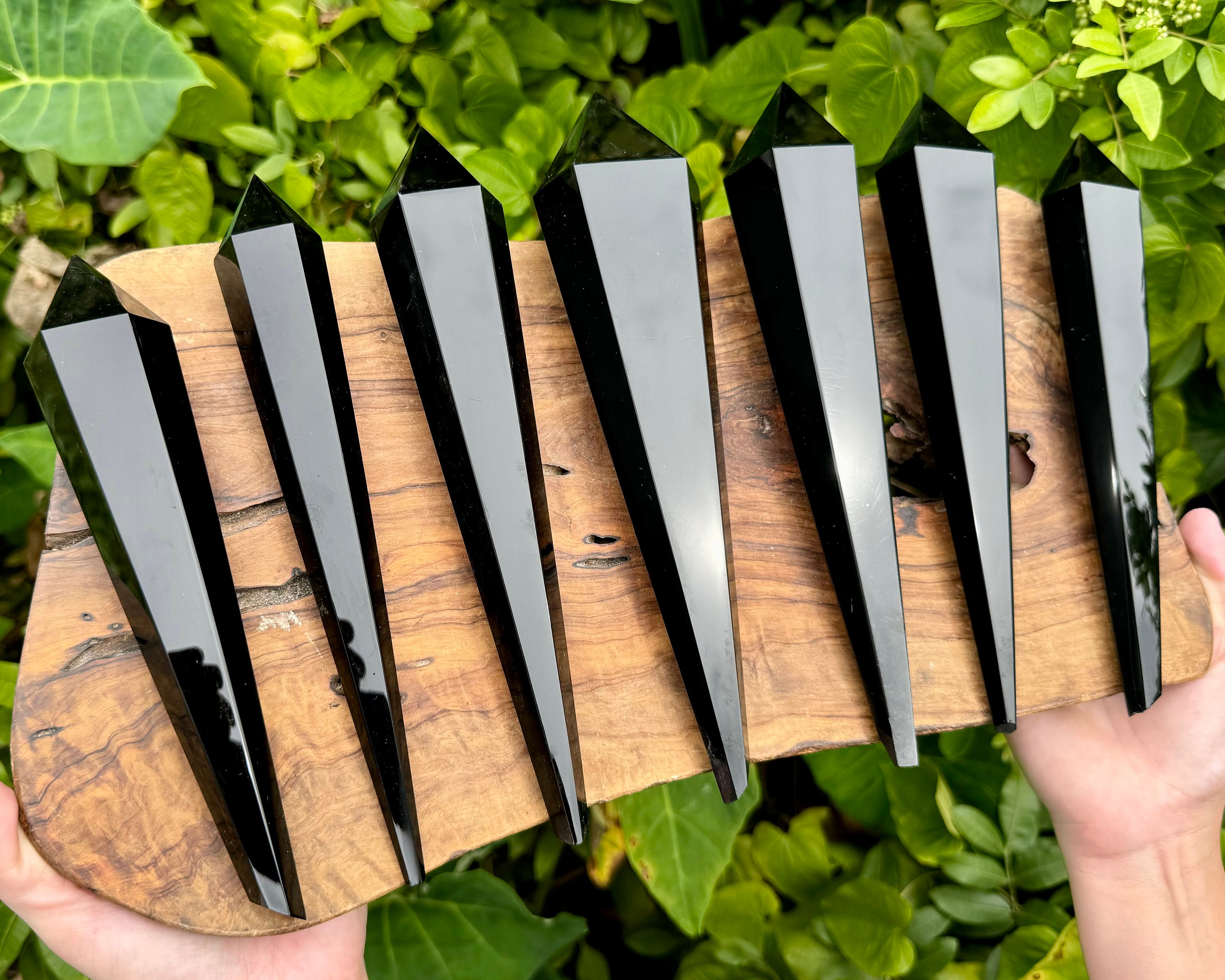 Absolutely stunning Black Obsidian Crystal Wands. The finish on these specimens is out of this world. The reflective nature of Black Obsidian gives these crystals great depth. Wonderful display specimens that make a statement! Obsidian is a wonderful grounding stone with a deep connection to the Earth. It will assist in removing negative energy and is a great protection stone.