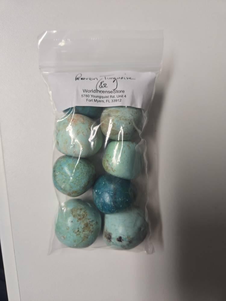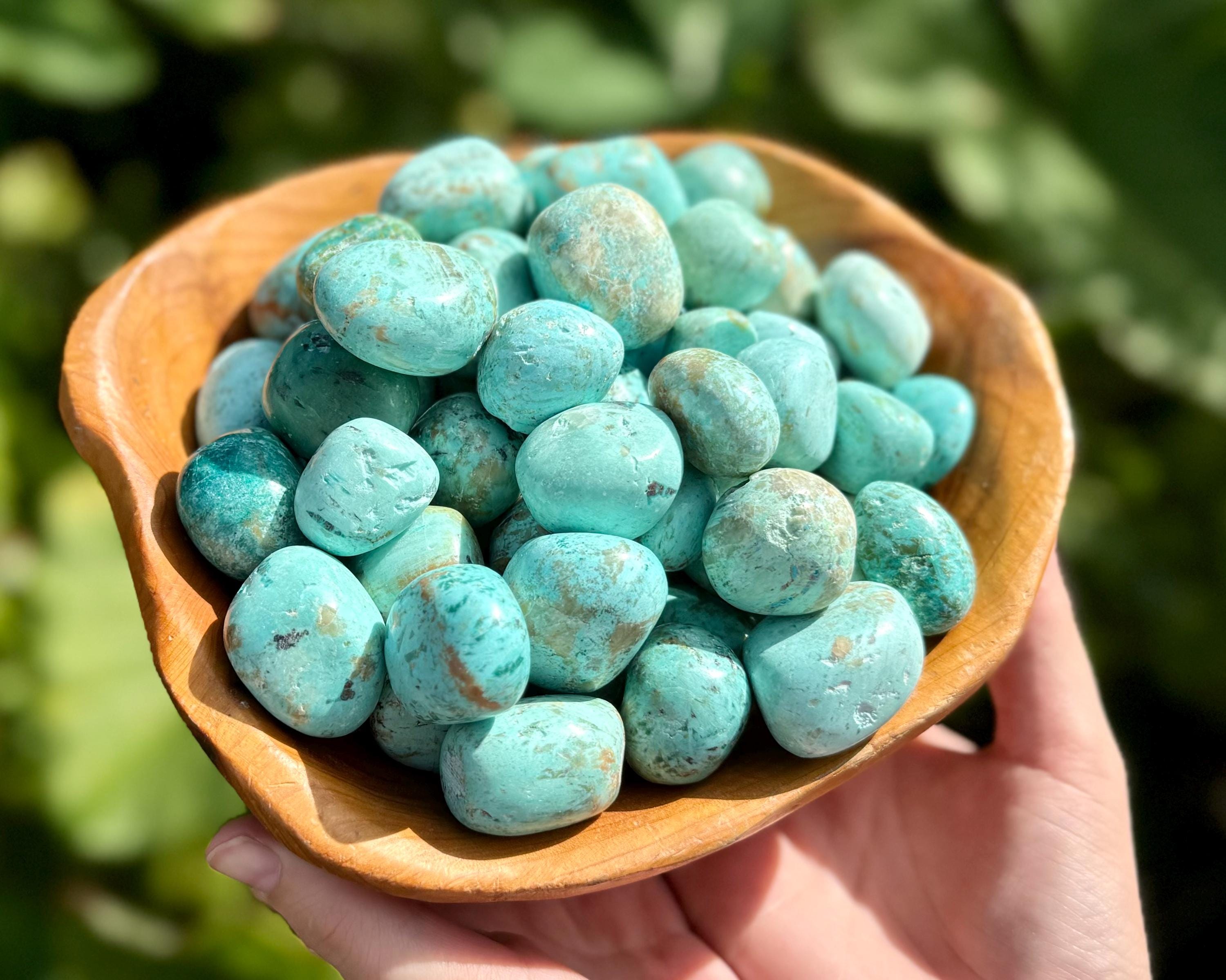 Beautiful Turquoise Tumbled Stones from Peru, size range about 0.75" - 1.25”. Choose order size from drop down menu, below is a guideline for how many pieces in each lot size.