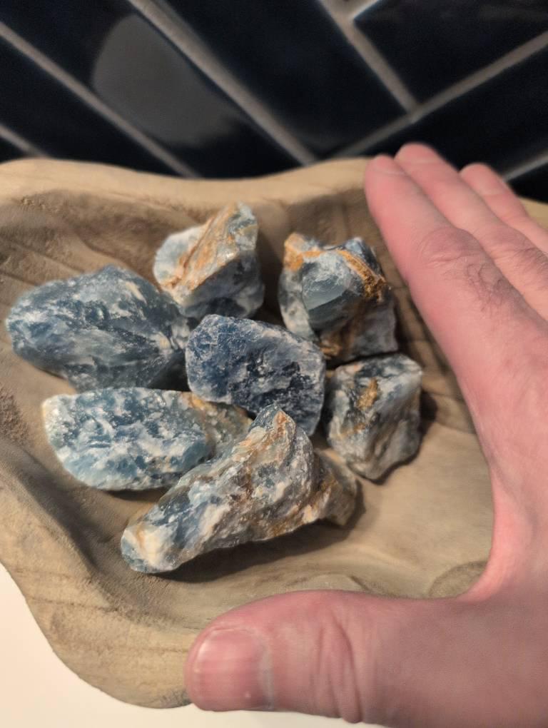Premium Grade Lots of Natural Blue Onyx Rough Crystals, size between about 1" to 2.5", from Argentina. Stunning high quality specimens with a one of kind Blue coloration. You can choose the size of your order - 1/4 lb (4 oz), 1/2 lb (8 oz), 1 lb, 2 lb, or 5 lb. A typical 1 lb lot will contain around 9 - 12 pieces +/-.