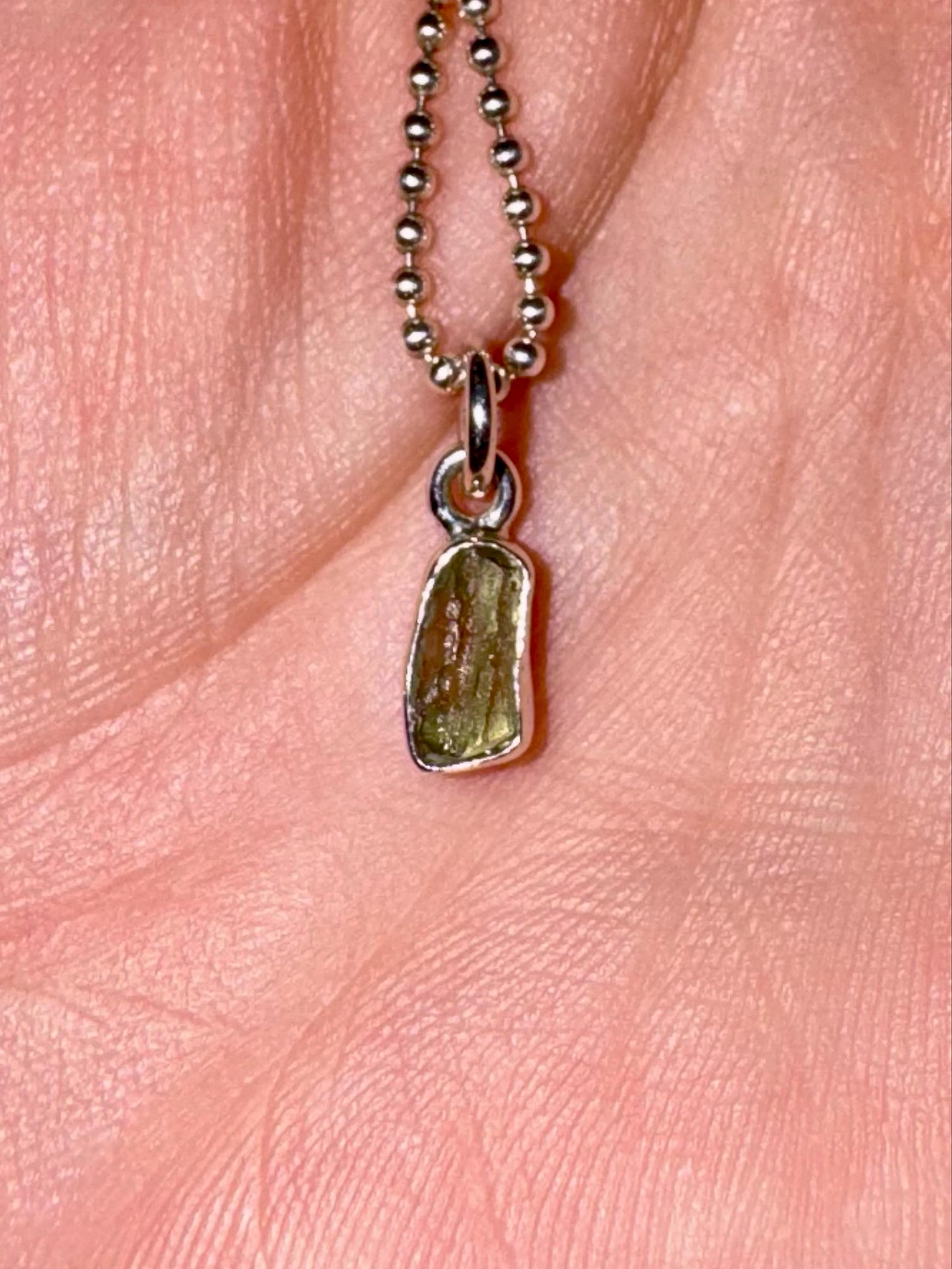 Beautiful 100% Genuine 925 Sterling Silver Moldavite Pendants. Hand selected for quality, these Moldavige Pendants are an incredible value for such a rare Crystal. You can select just the pendant by itself; or add an 24" Sterling Silver Chain.