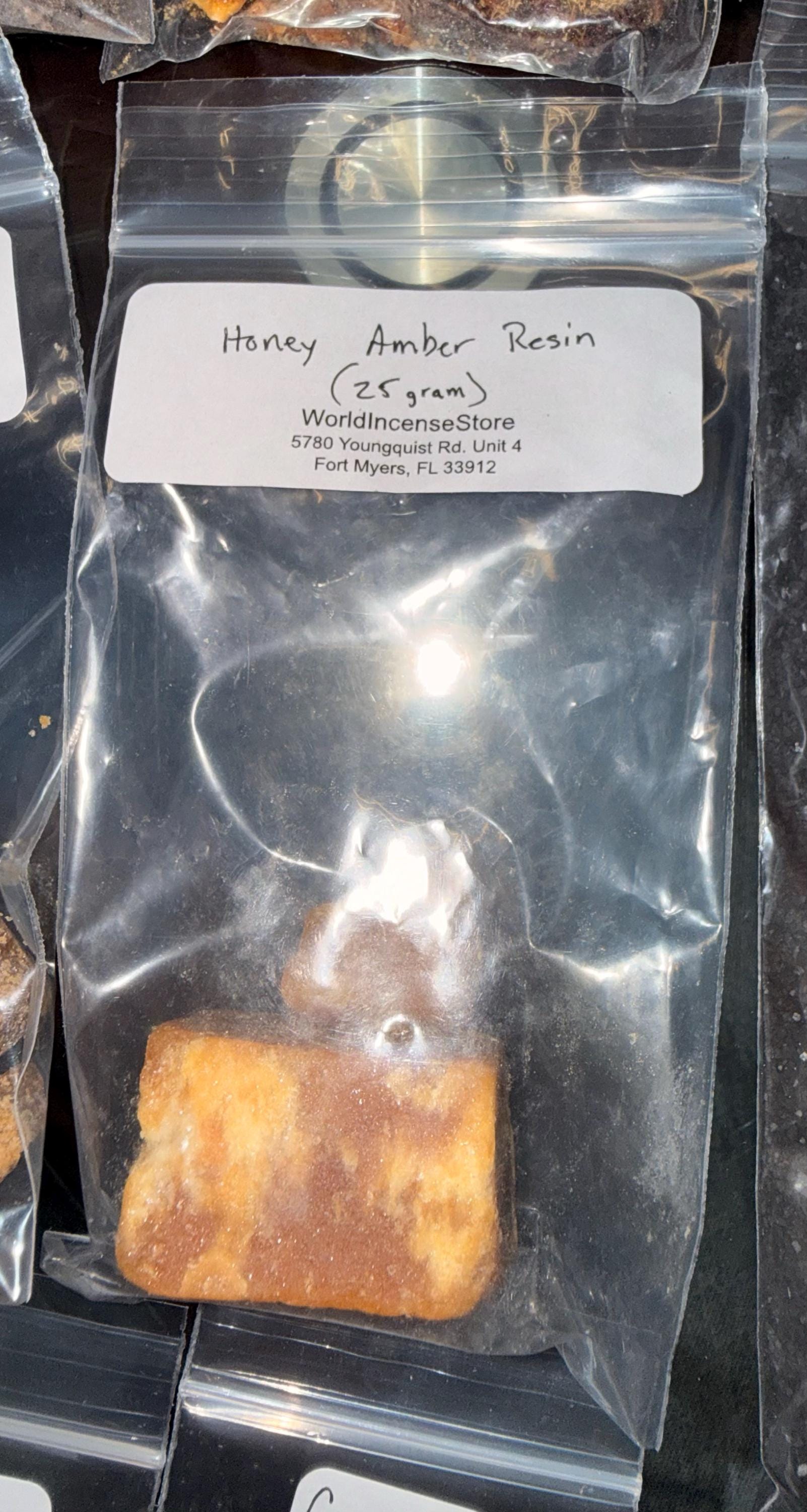 Premium quality 'AAA' grade Honey Amber Resin incense from India. Select the quantity (5, 10, 25, 50, 100 or 250 grams) from the drop down menu. Packed in resealable plastic bags for your convenience - seal in the freshness!