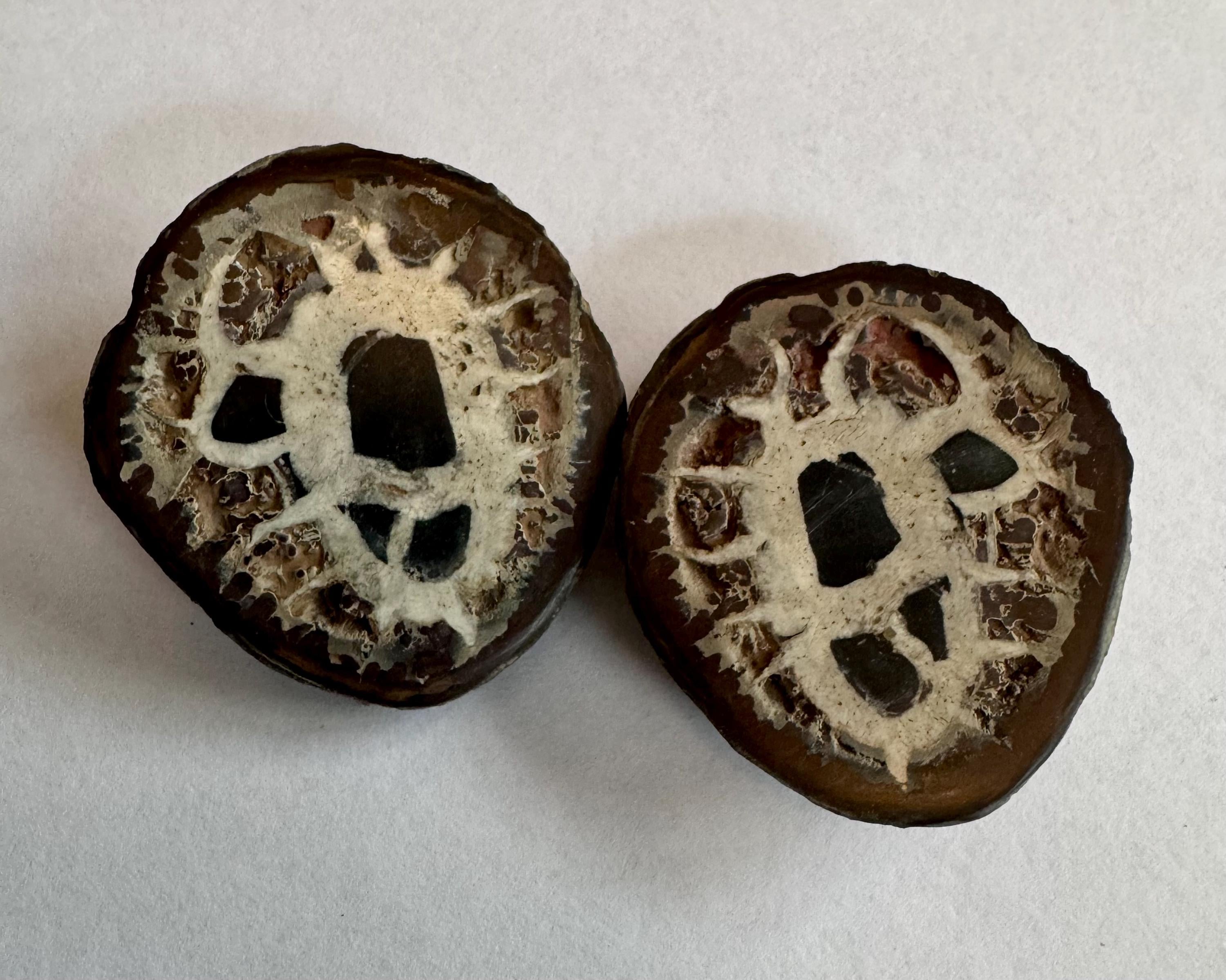 Also known as 'Dragon Stone', each of these unique pieces is a genuine Septarian Nodule carefully cut and polished to reveal the stunning contrasting formations within. These aren't just rocks, they're geological time capsules, each with its own story. The exterior of the nodules is a dark, earthly brown, while the interior is a spectacular combination of minerals creating a one of a kind pattern. These specimens are from Morocco and make a great addition to any collection.