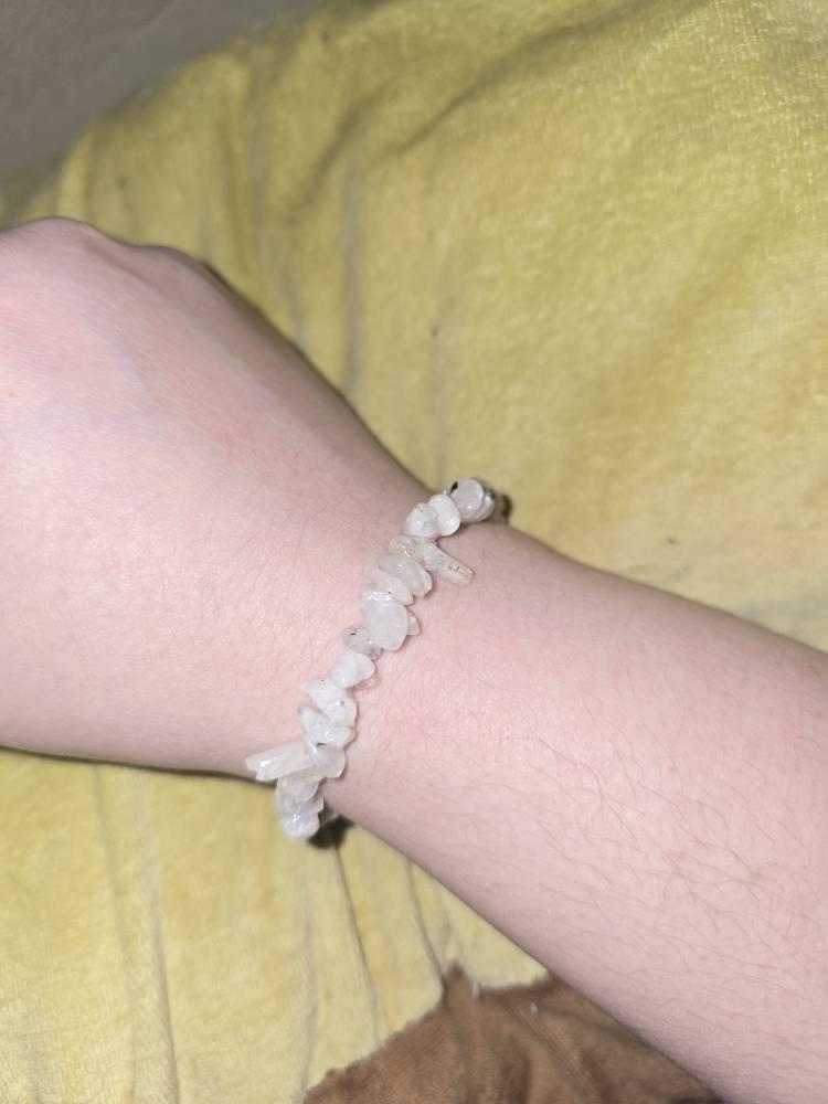 Beautiful moonstone chip bracelet! I am being extra careful with it as I've had a couple of these break on me in the past (with no success getting it back together as beautifully as it was done!!)