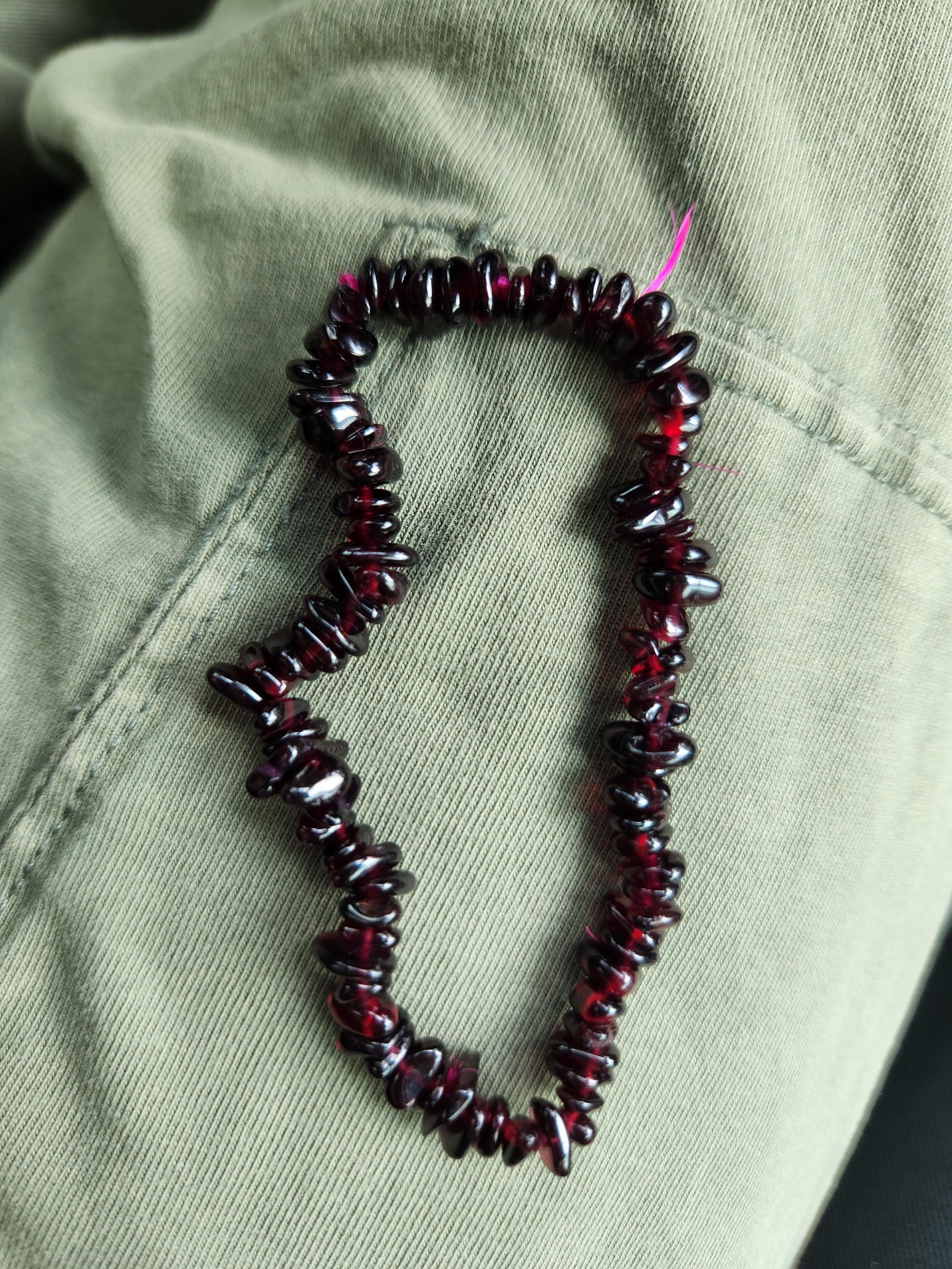 A beautiful bracelet crafted from Garnet chips on a stretchable bracelet, fits most wrists. About 7.25" in size. Great for meditation, crystal healing, Reiki or simply wearing!