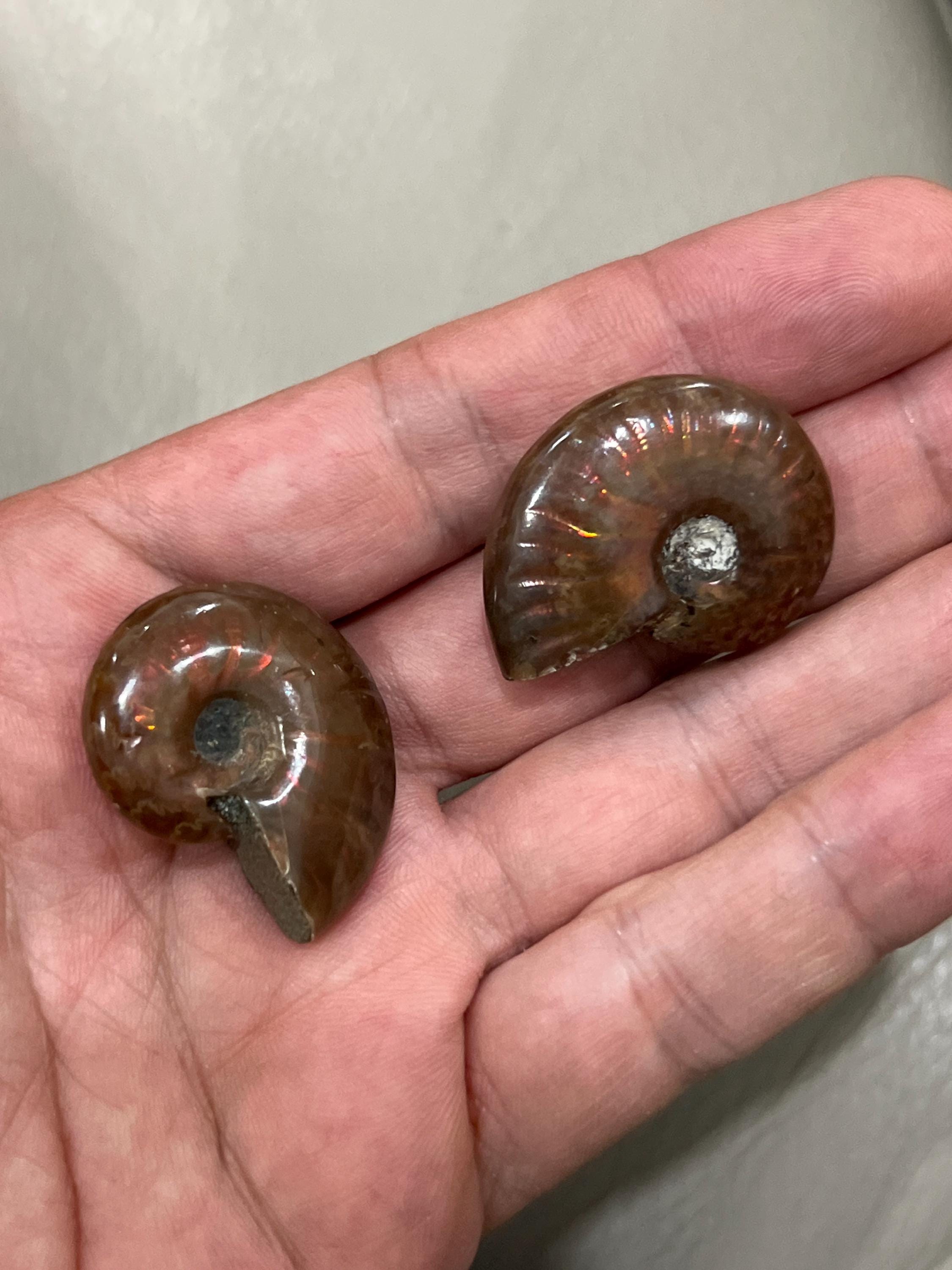 Stunning Red Opalized Ammonite Fossils with wonderful Iridescence. These beautiful specimens come from Madagascar. Each fossil is unique with a beautiful coloration ranging from deep earthly brown to a dark Red. These fossils have a polished finish with unique iridescence. Ammonites were marine animals from the Jurassic and Cretaceous period 140 million years ago!