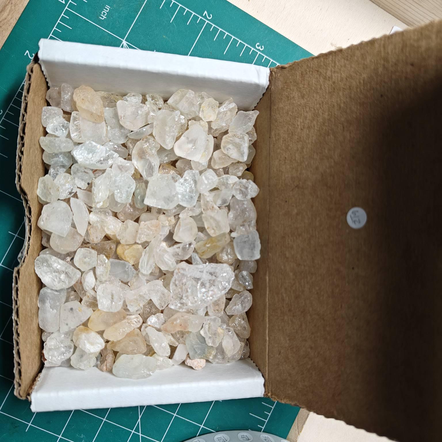 1/2 lb (8 oz) Box Lot of Premium Grade Small Natural Rough Topaz Crystals size between 0.25" to 0.75" +/- from Brazil. A calming stone Topaz is believed to bring balance into your life. It is associated with creativity, love and prosperity.