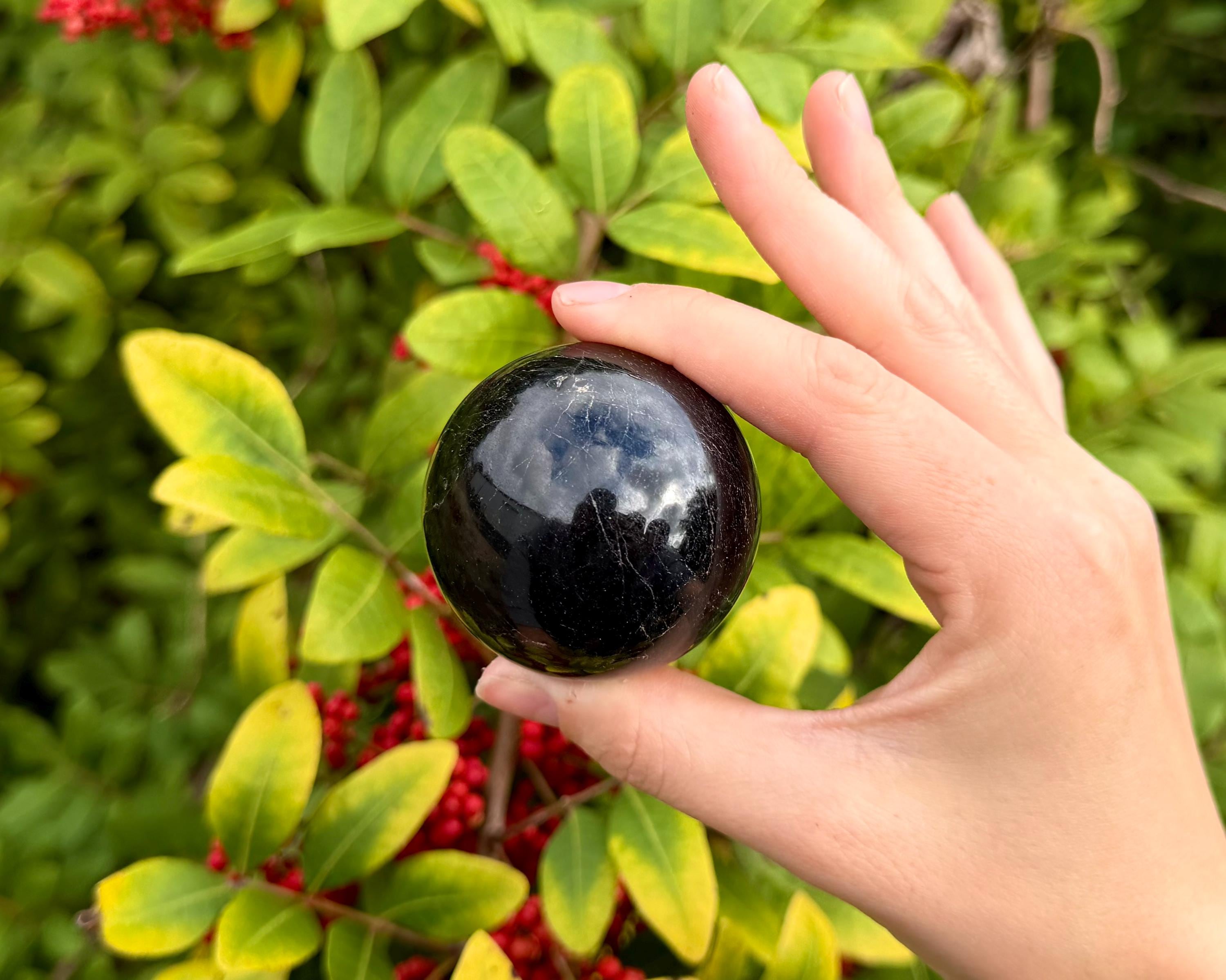 Invite grounding energy into your home with these stunning Black Tourmaline Spheres. Often referred to as a 'physic shield', Black Tourmaline is the premier stone for absorbing and transmuting negative energy. Its deep, midnight-black surface is polished to a high gloss, making it a powerful tool for meditation and a sophisticated addition to any decor.