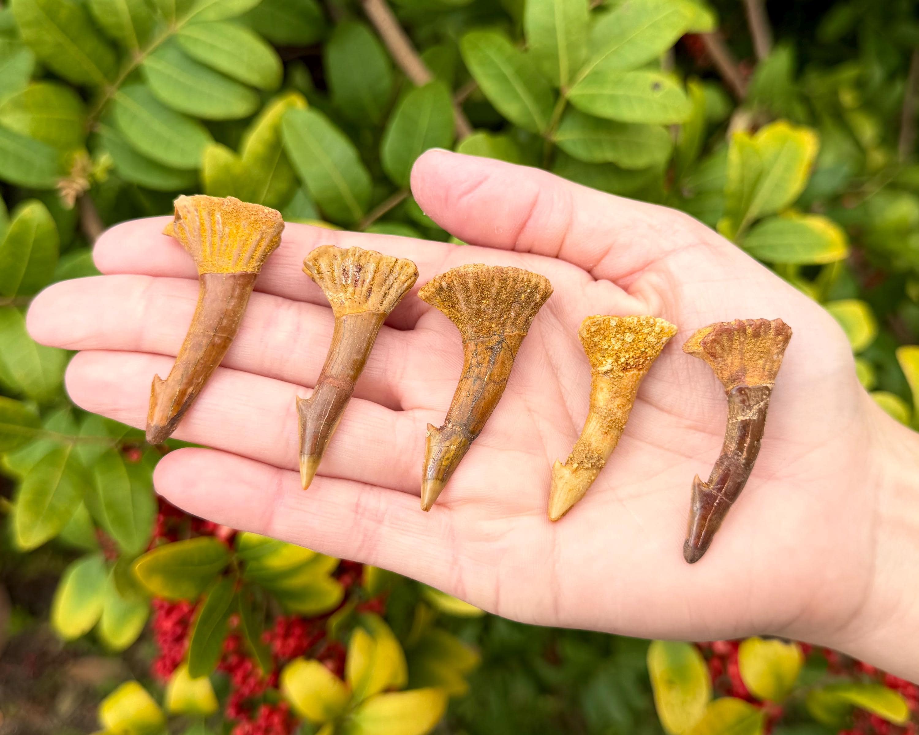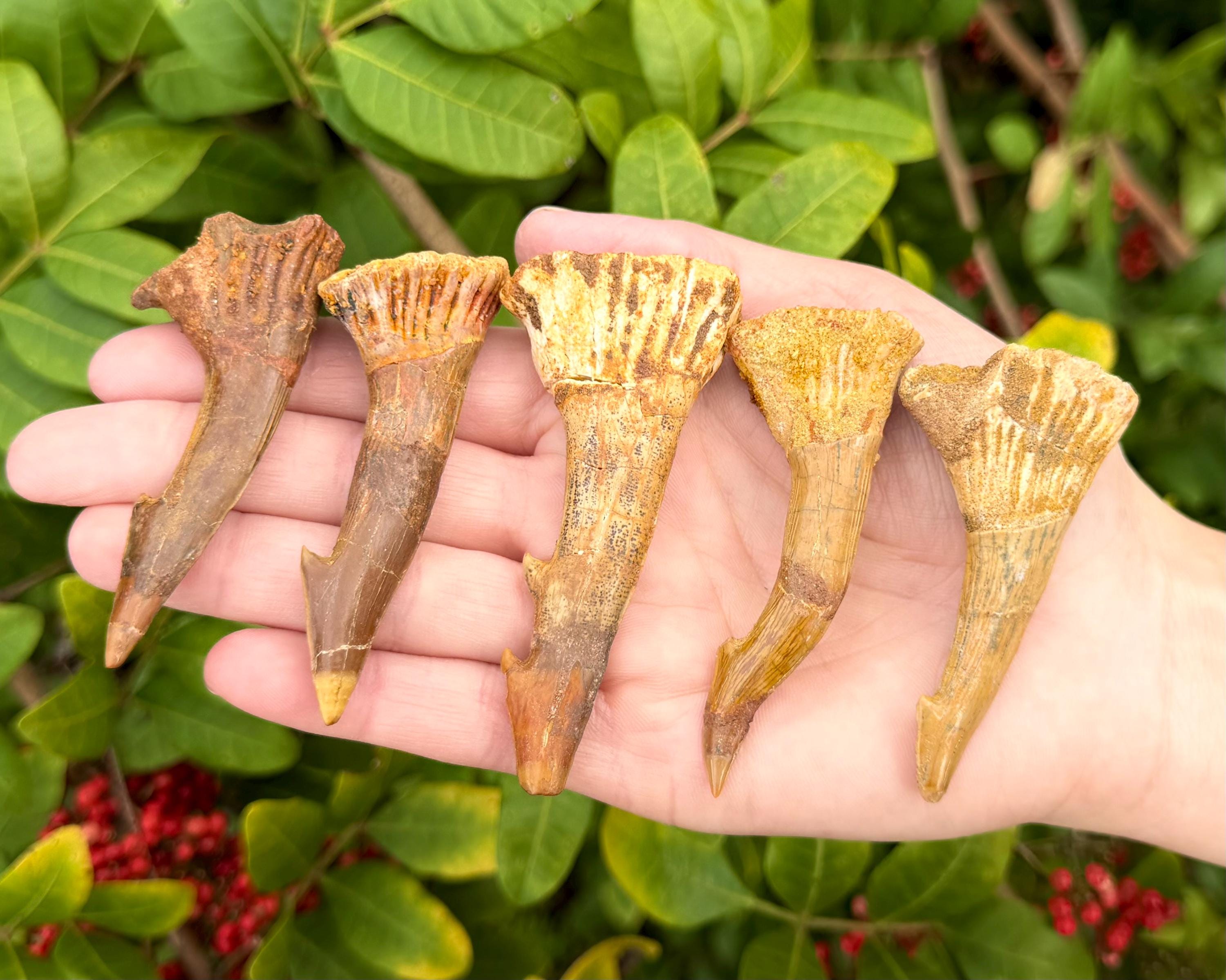 Each tooth is a one of a kind specimen with varying shapes. Fossils shown are for illustration as these are natural items please expect some variance from item to item. Fossils supplied will be very similar but not identical. Posted pictures are to provide an idea of the typical mix of sizes, shapes and coloration's available. These Fossils when procured may have minor repairs to help complete the overall integrity of the specimen.