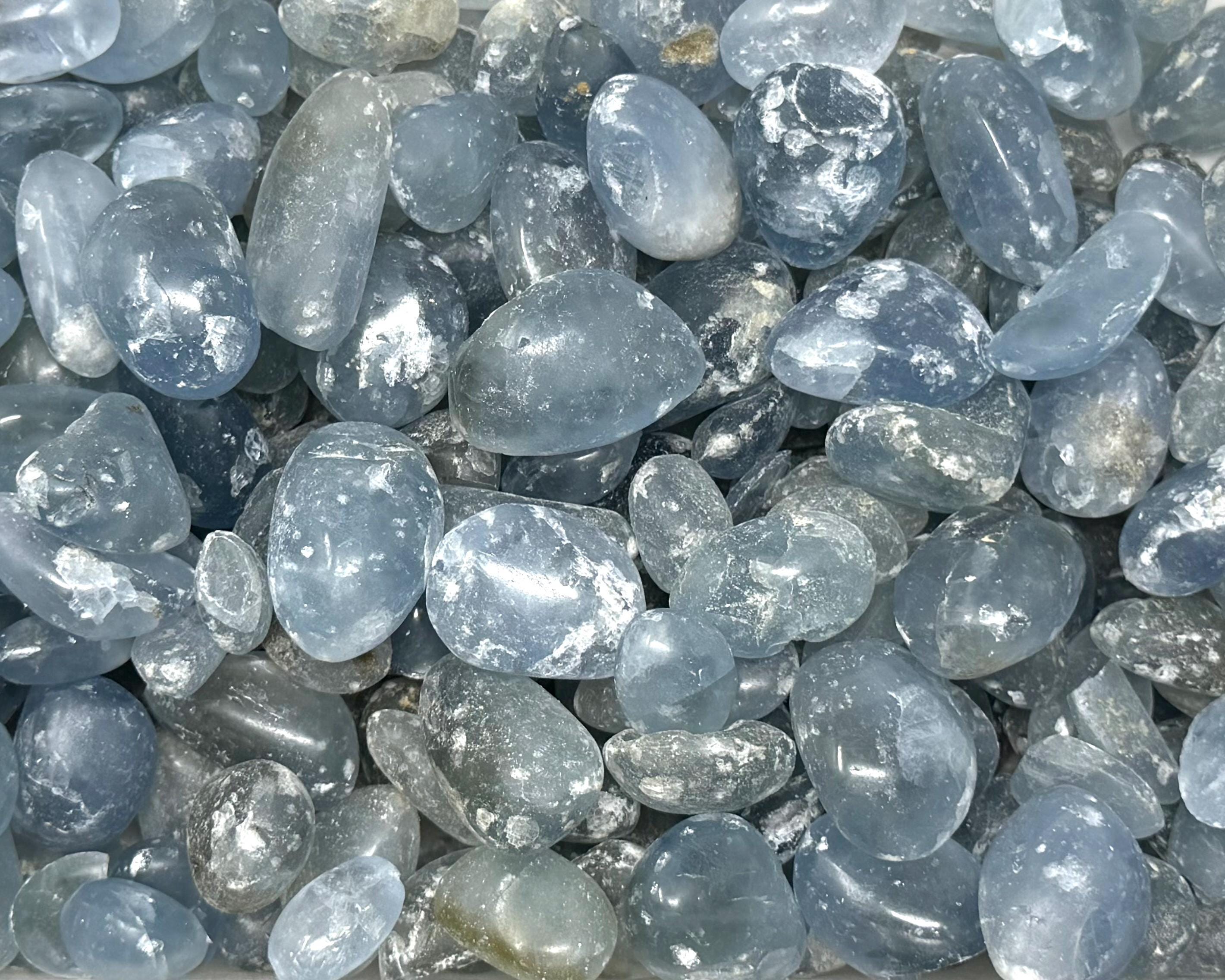 'B' Grade Celestite Tumbled Stones from Madagascar. Whilst these are still beautiful Crystals, they may have chips, dings, imperfections or discoloration that we cannot sell for our 'A' Grade counterpart. These are a great value and still possess all the beautiful qualities of Celestite. Size - between about 0.5" - 1" +/-. Associated with the Third Eye Chakra and also the Throat Chakra these peaceful, calming stones which emit a smooth and peaceful vibration.