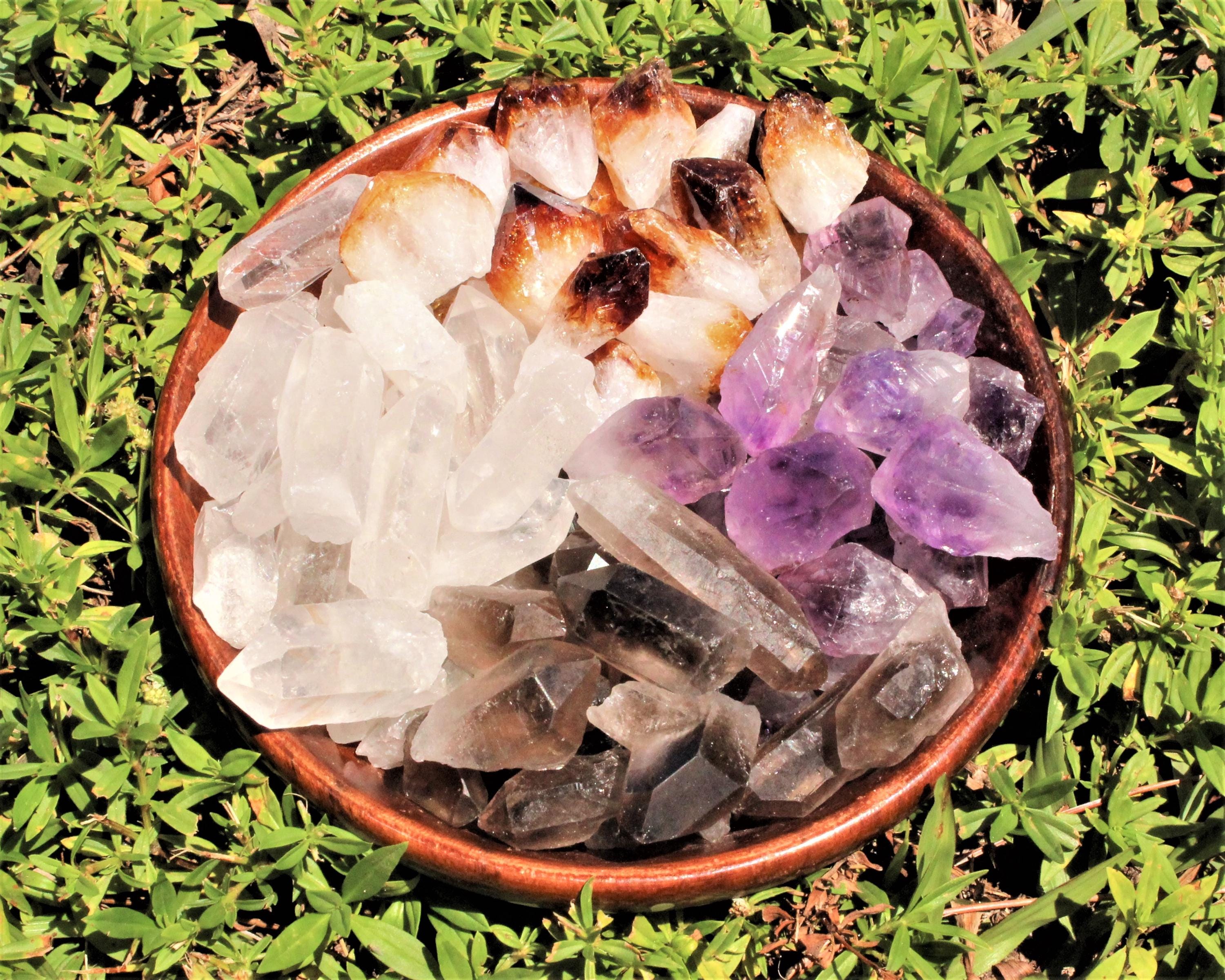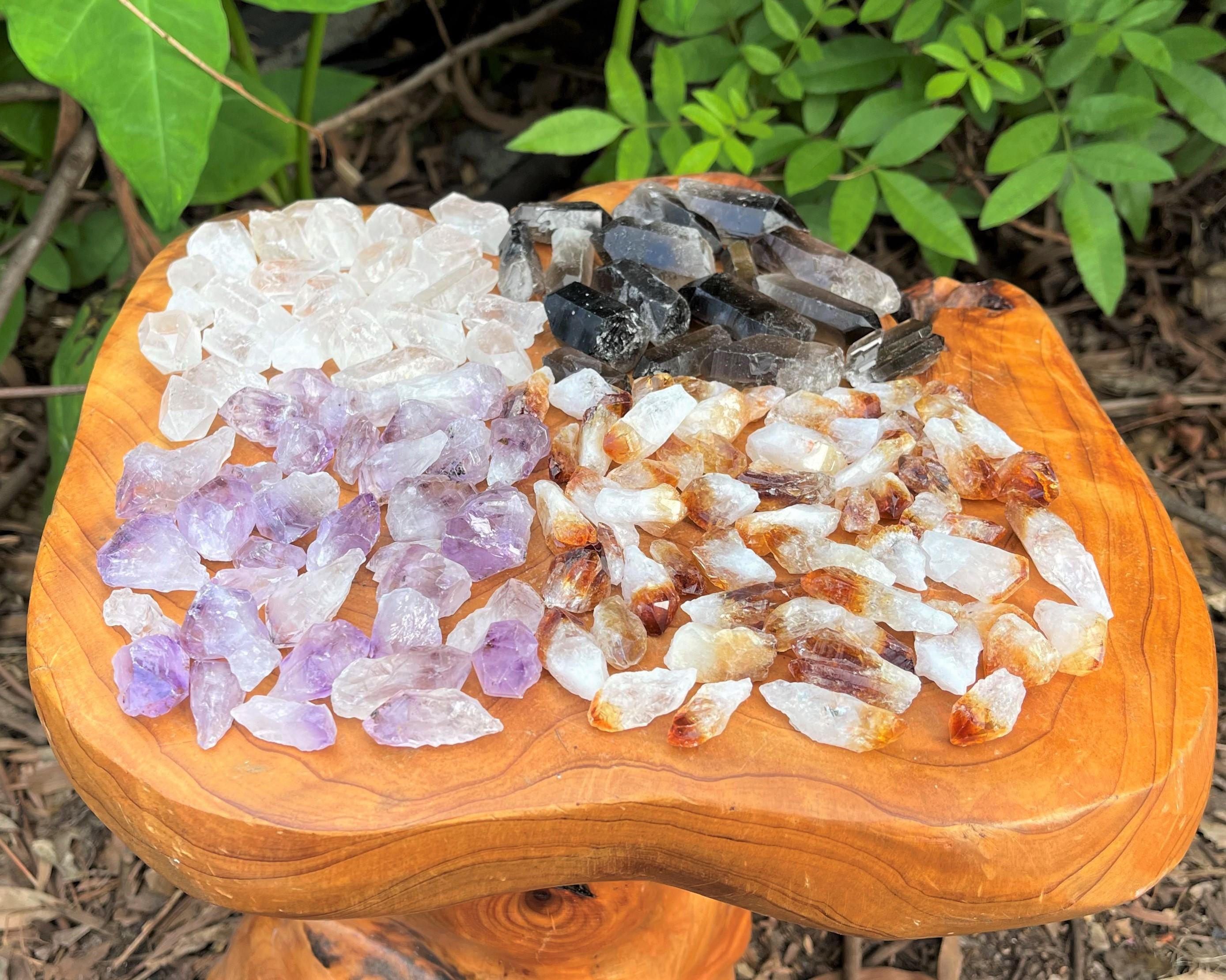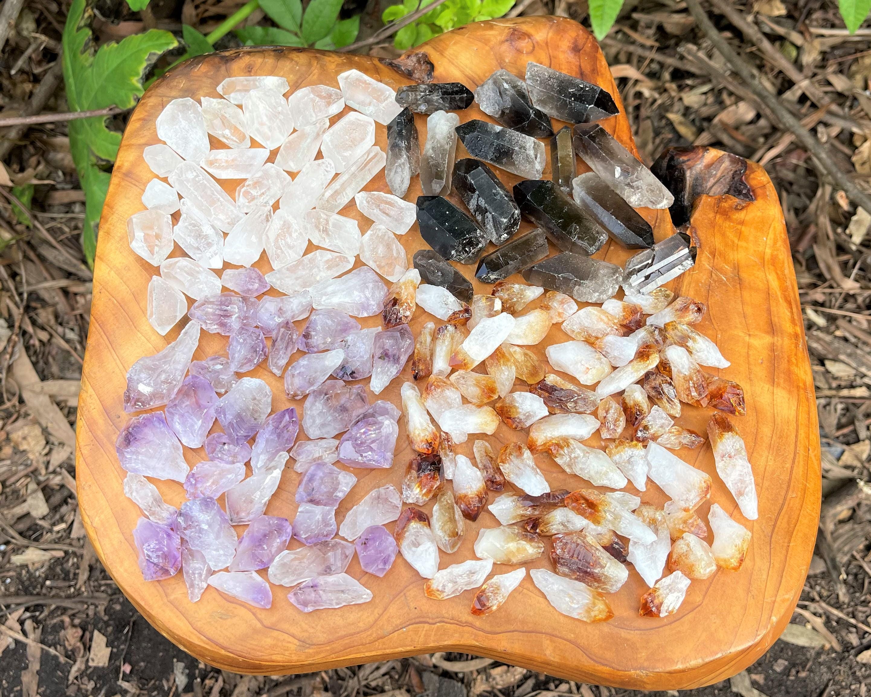 These boxes are made from our smallest Crystal Points ranging 0.25 - 1.25" +/-. This crystal mix is perfect for collectors, crystal grids, meditation, jewelry making, or gifts. The combination of four popular quartz varieties makes it a versatile and eye-catching set for any crystal lover.