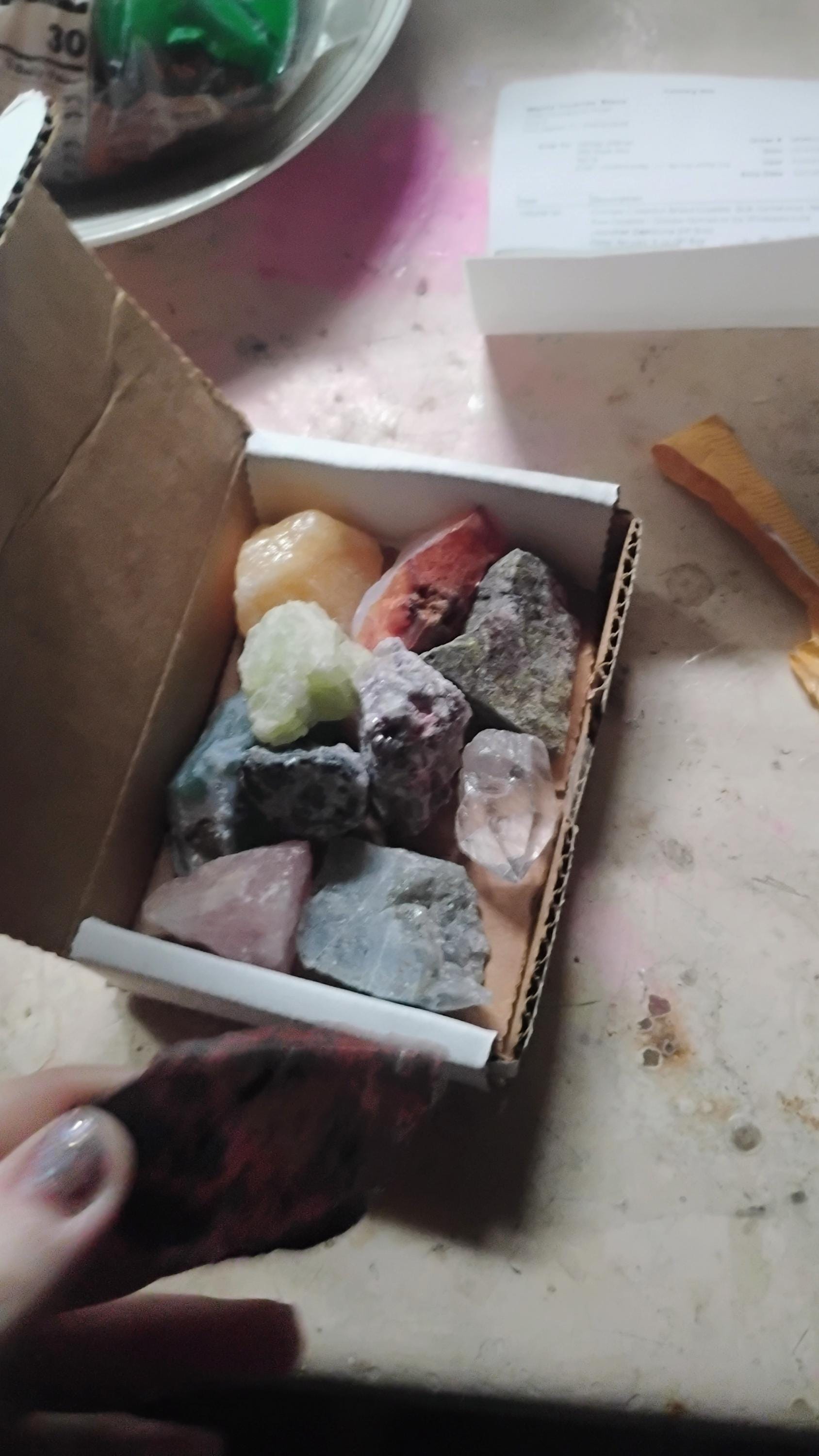 Very pleased with the price, the arrival time, the packaging and Shipment were great, thanks to the seller I have a whole bunch of new gorgeous, unique stones to add to my collection m they all came intact and beautiful . Only wish there had been maybe a little pamphlet or card that stated the crystal types but I can deduct from my reasoning skills as I'm very knowledgeable about crystals and have identifier apps. But for someone that didn't collect much crystals or know about them. That's be helpful. Just a thought. Other than that. I'm delighted!
