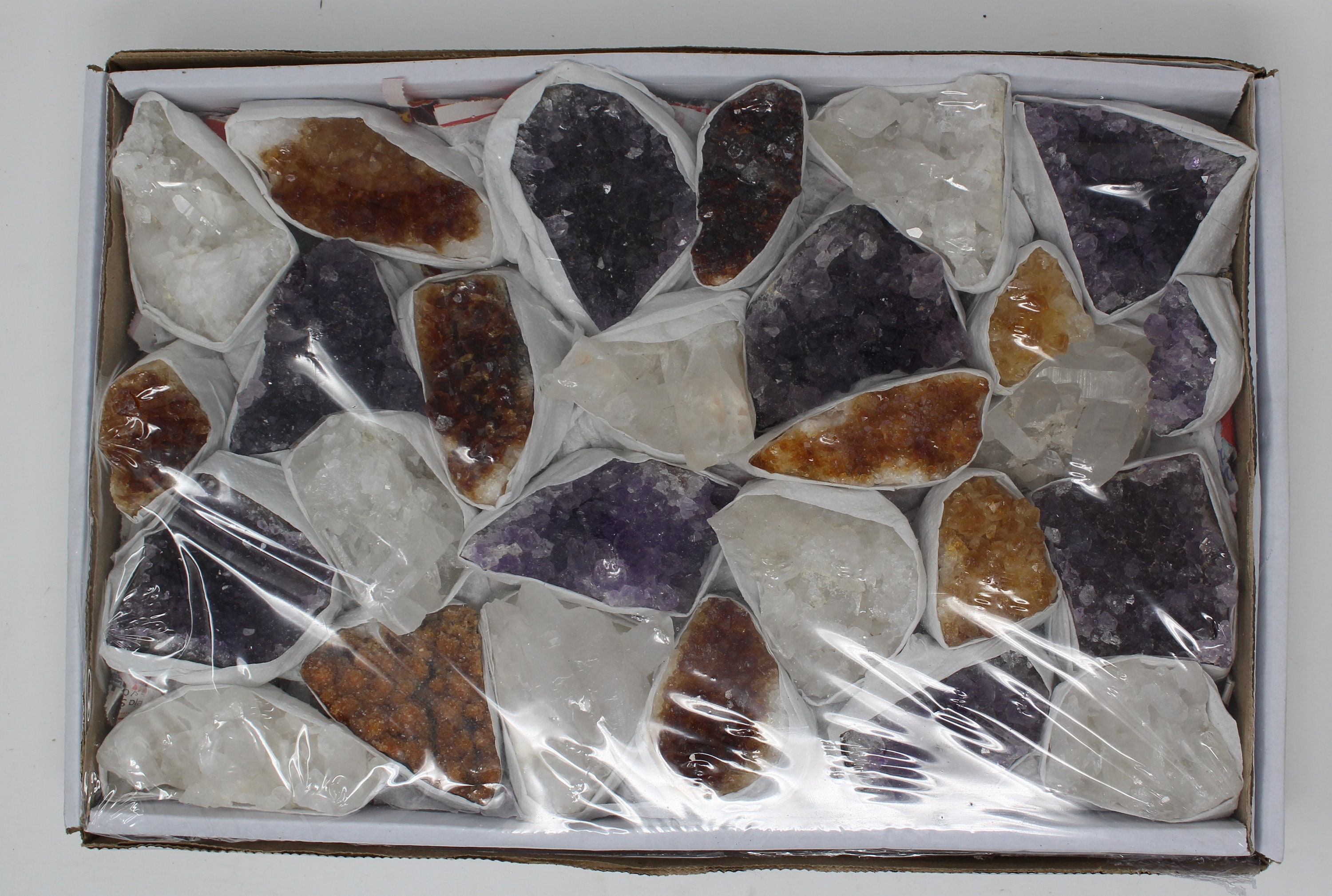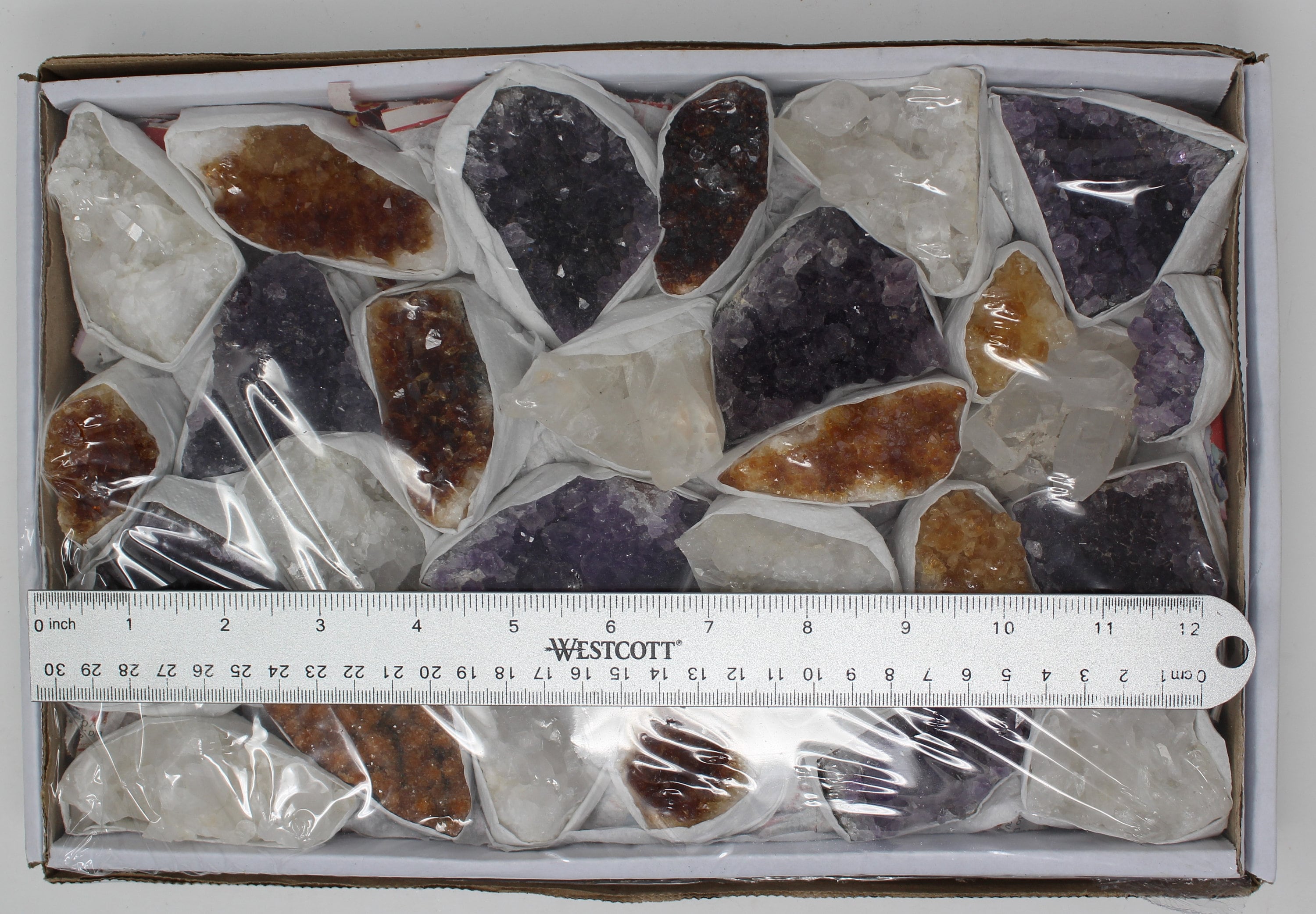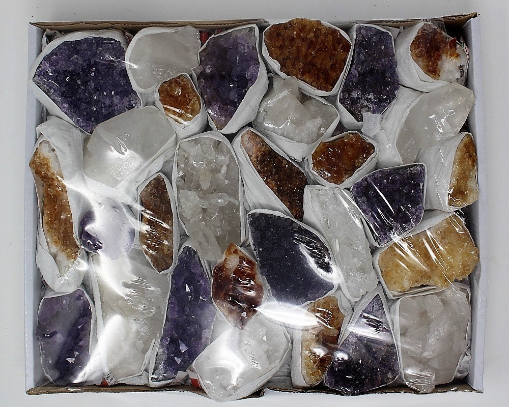 Set of Beautiful Amethyst, Clear Quartz and Citrine Clusters: