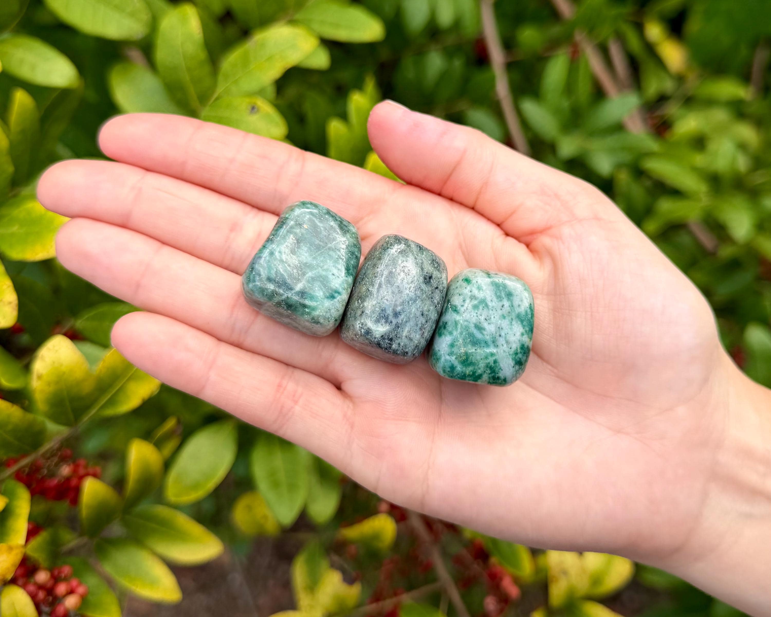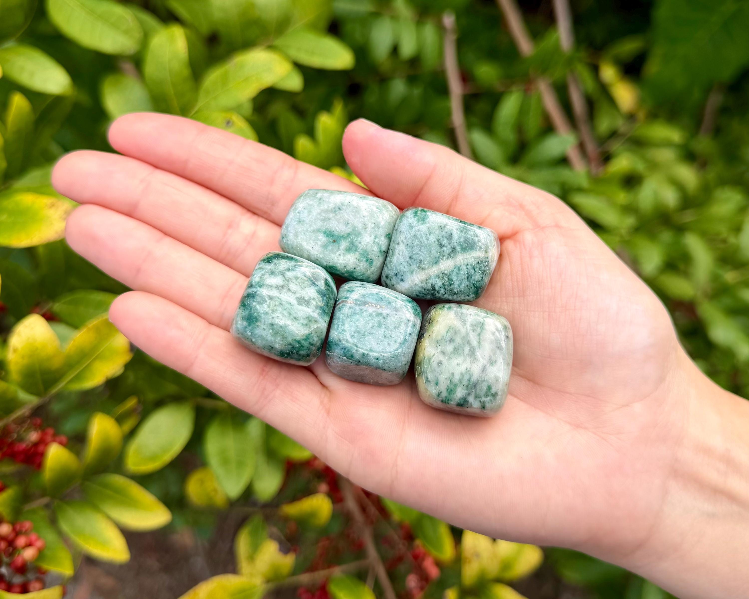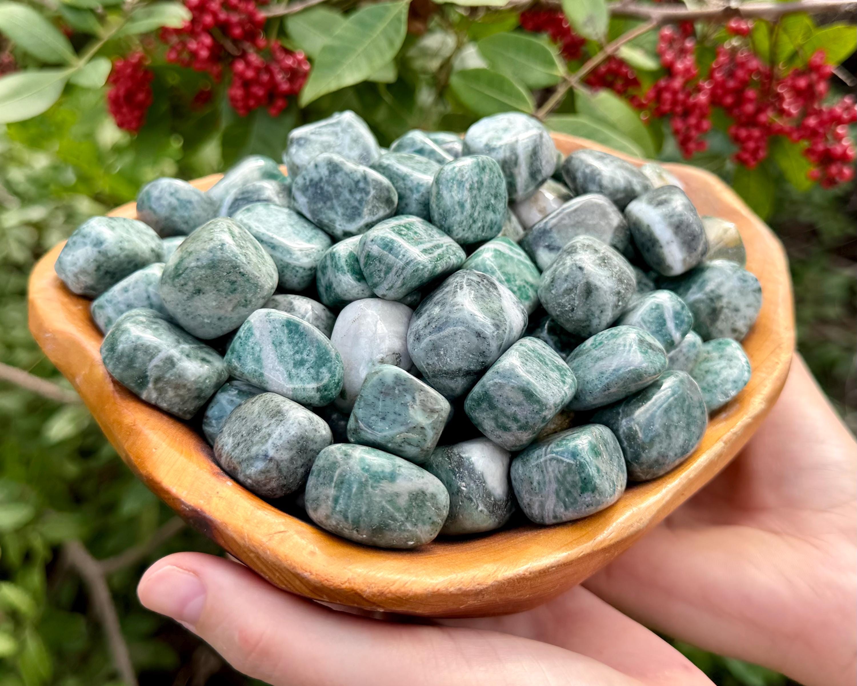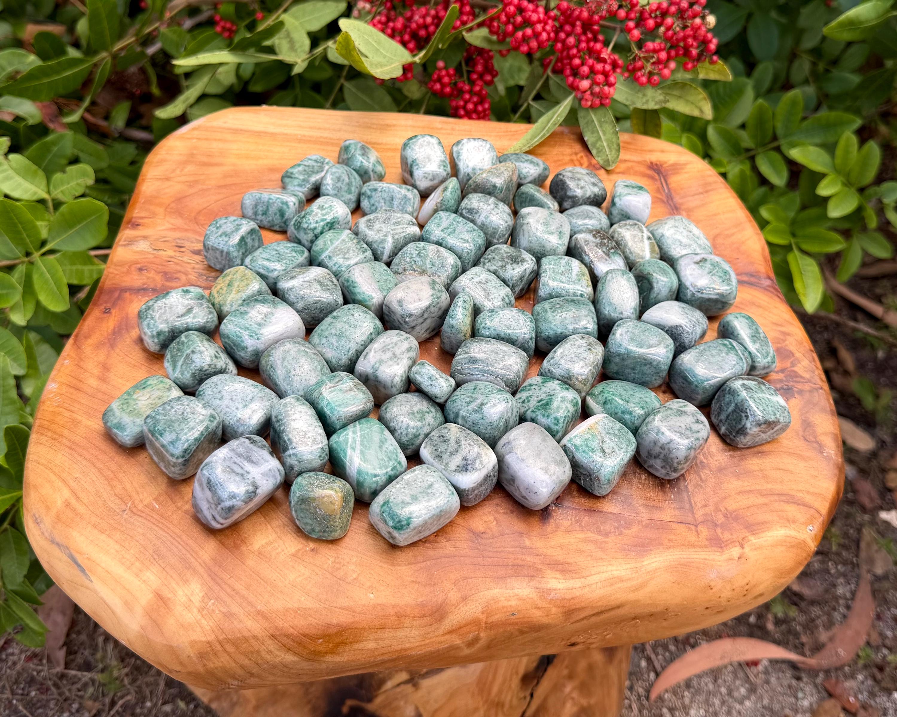 Tumbled Jade crystals approximately 0.75" - 1", from China. Jade is believed to assist with both health and abundance - to attract not only emotional happiness but also wealth into one's life.