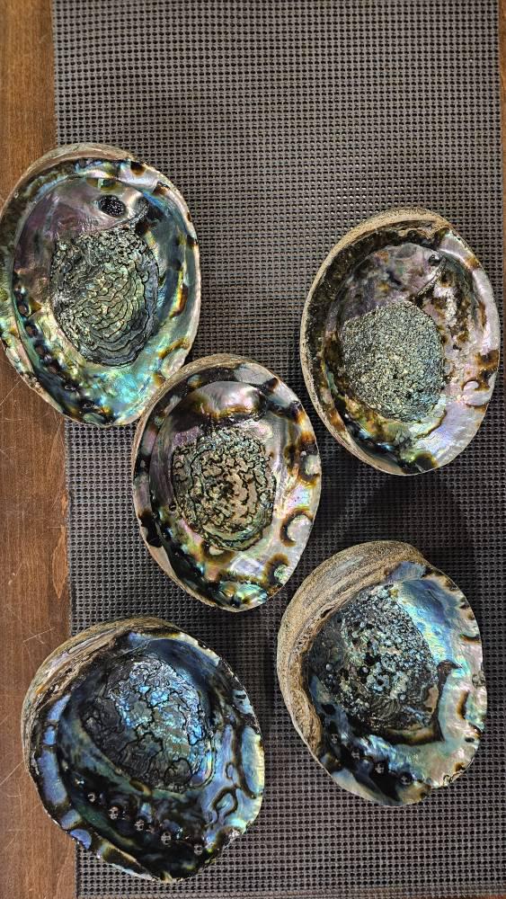 All our abalone shells are super nice retail grade quality, not museum quality. They are real. The backs may have cuts, scrapes, holes, scars and blemishes. If you look at the posted pictures you will see the holes which are common to 99.99% of these shells. Some of the edges may have an odd small chip. Some have a clear glaze or polished interior to reveal beautiful shades of greens, blues and silver and many other colors, many with some black accents. Black on the inside does not mean the shell has been used – it is a natural coloration in some shells. These shells are perfect for smudging ceremonies and can also burn resins, etc. They also can act as a storage home for your smudge sticks or as a beautiful natural home decoration, great for holding and displaying tumble stones, etc.