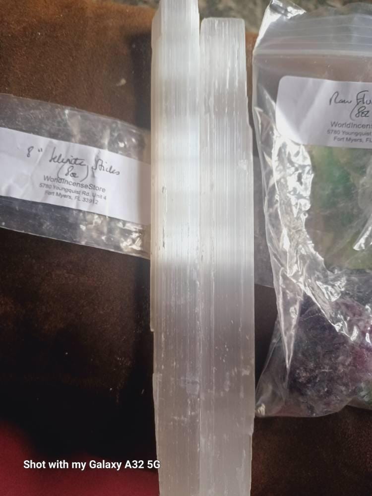 As this is a natural item please allow for slight variance +/- especially width. Selenite scratches, chips, dents, and fractures very easily. Due to its soft nature, please expect all Selenite products to have some minor 'imperfections'. As such you may notice some loose particles in the wrapping / shipping box - this is quite normal.