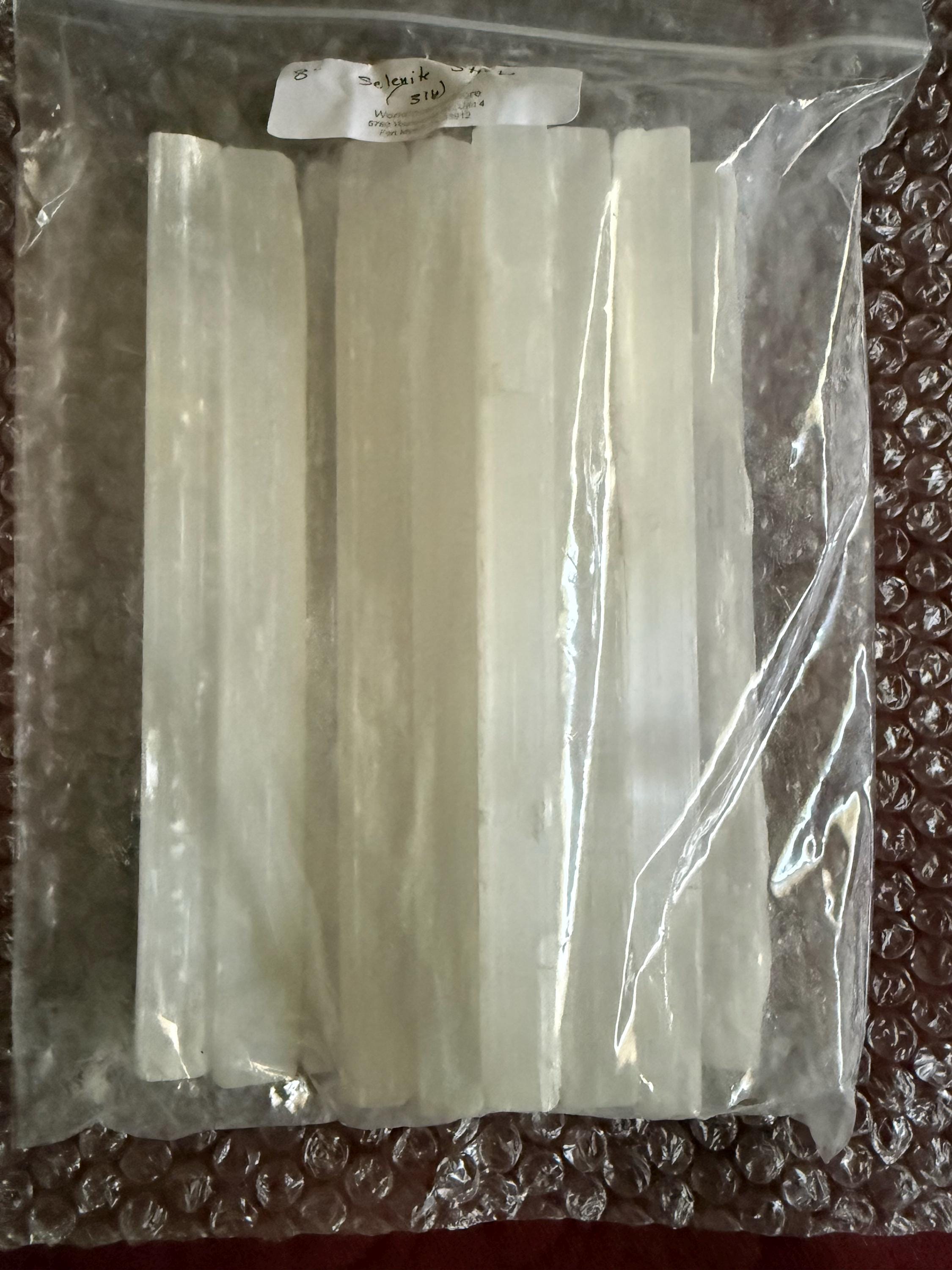 Wholesale bulk lots of beautiful natural raw White Selenite sticks from Morocco. Each piece is cut to about 8” length (widths will vary a little). Below is a guideline for how many pieces will be in each lot.