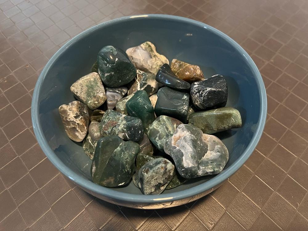 The moss agate arrived in a timely manner and was as described. My son loves to tumble rocks and was excited to receive these.
