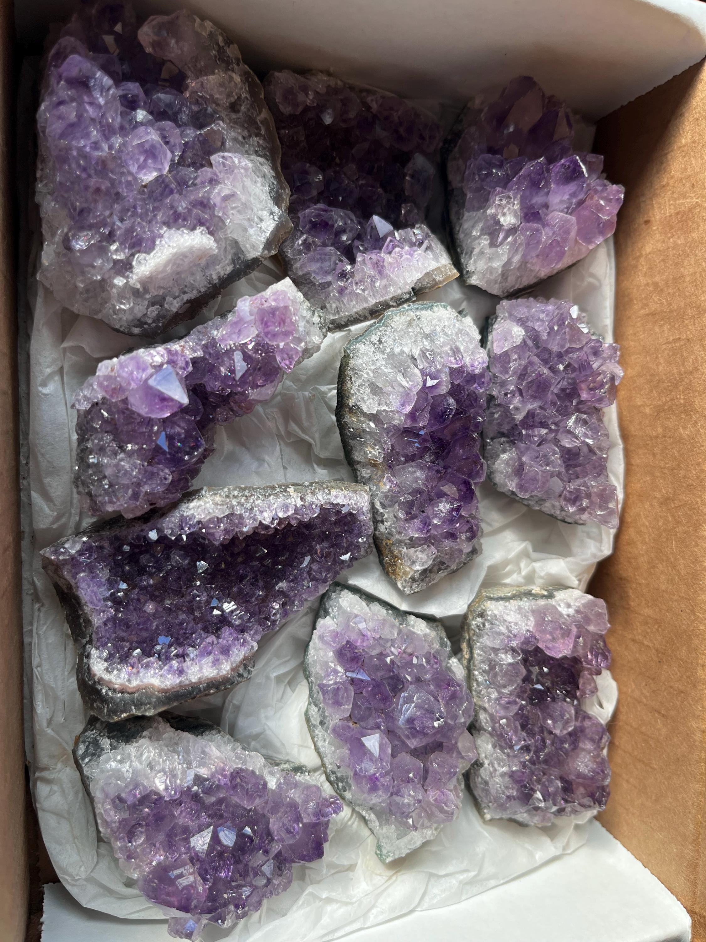 Set of Beautiful High Quality Amethyst Clusters in small flats.
