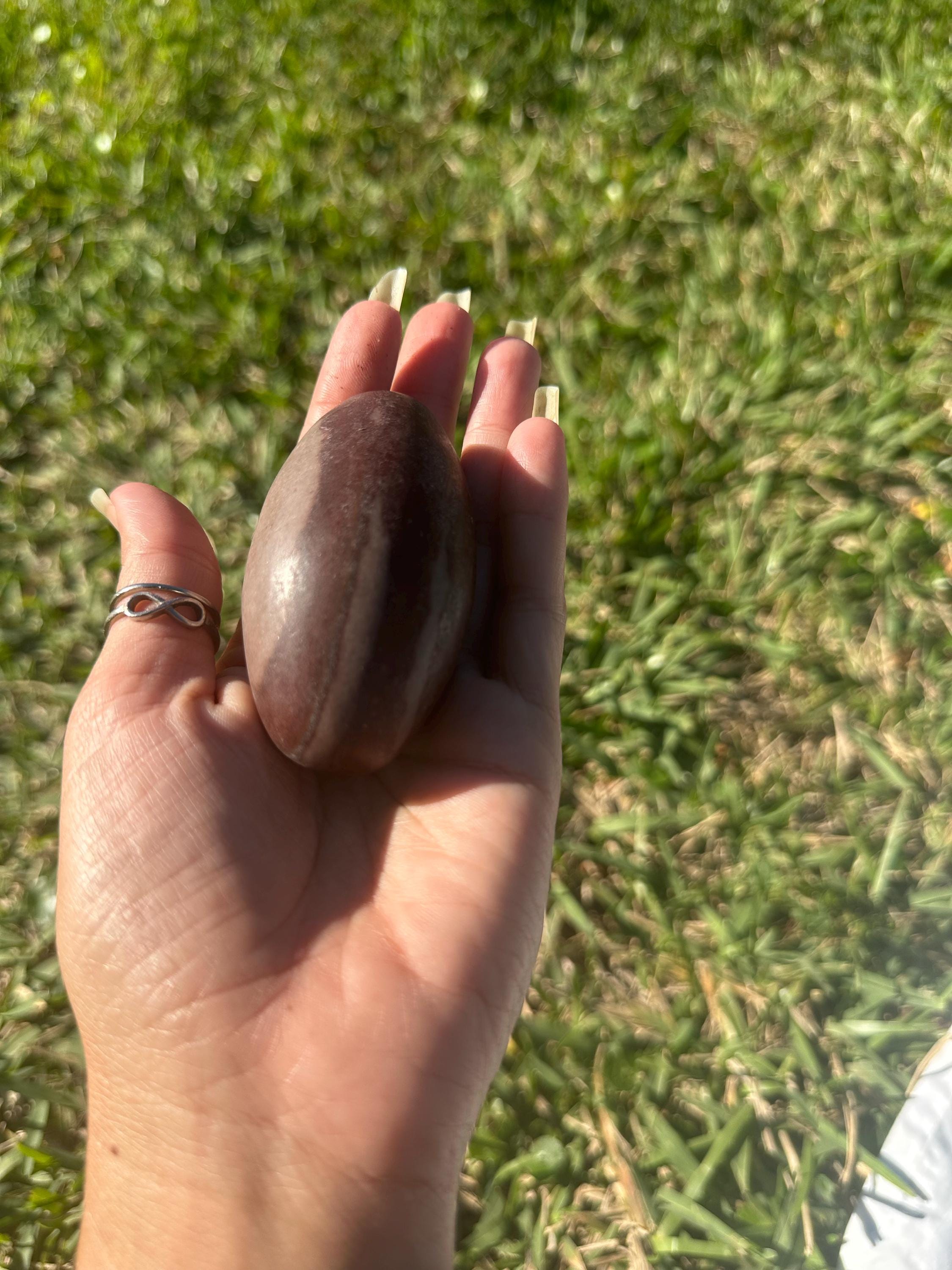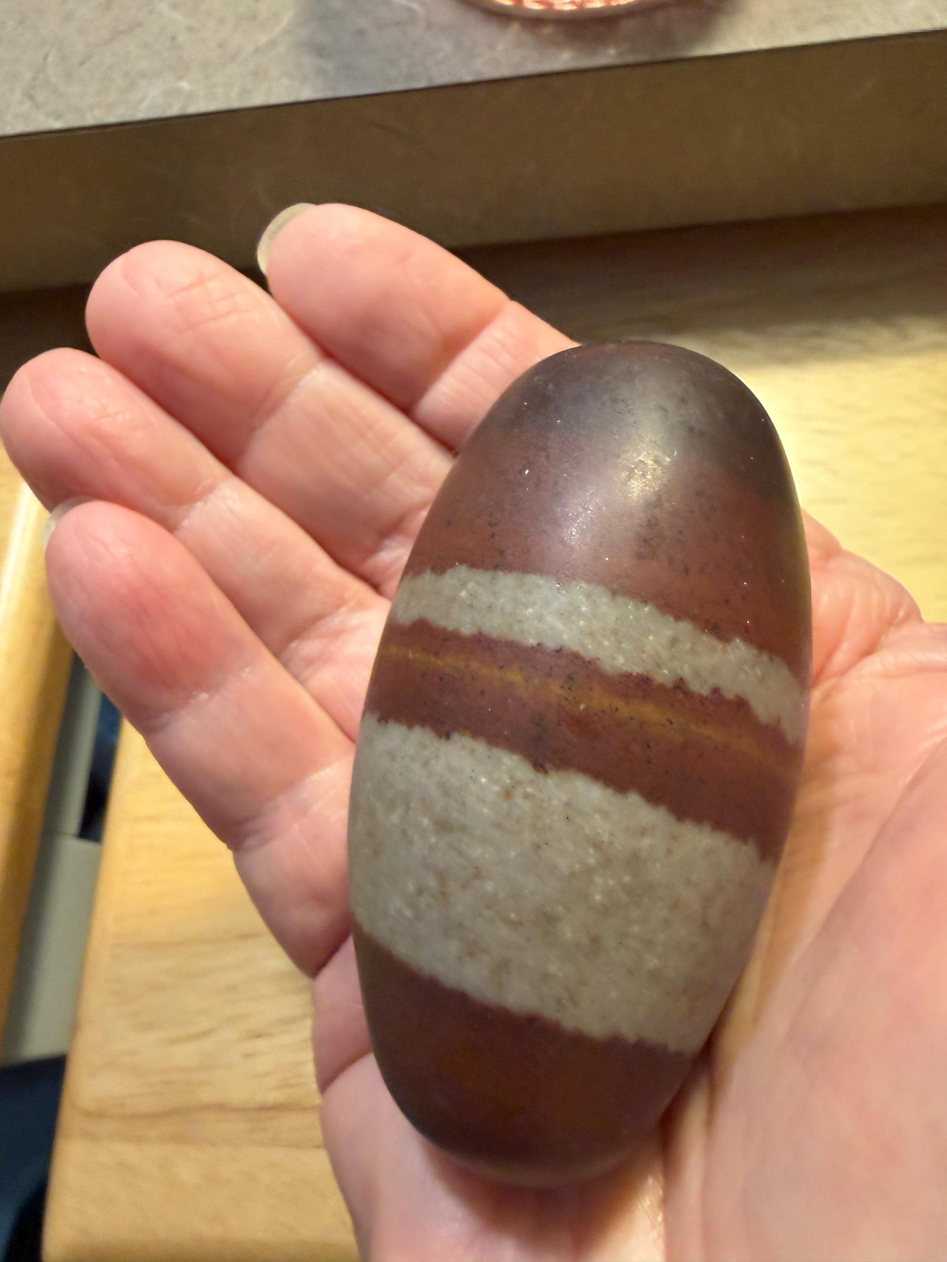 Sacred Shiva Lingam Stones from the Narmada River in India. Each egg shaped stone is unique, with its own patterns and swirls, some are even a flat brown or beige color. The shape of these stones is believed to represent the union of male and female energies. These stones are used in worship, crystal healing and chakra work.