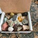 Wholesale Lot: 8 oz (1/2 lb) of small mixed natural raw gemstone crystals. Mixed lot of assorted calcites, crystals, points, blades, gemstones, agates etc. This miniature set is a combination of extra small size specimens ranging from approximately 0.25" - 1".