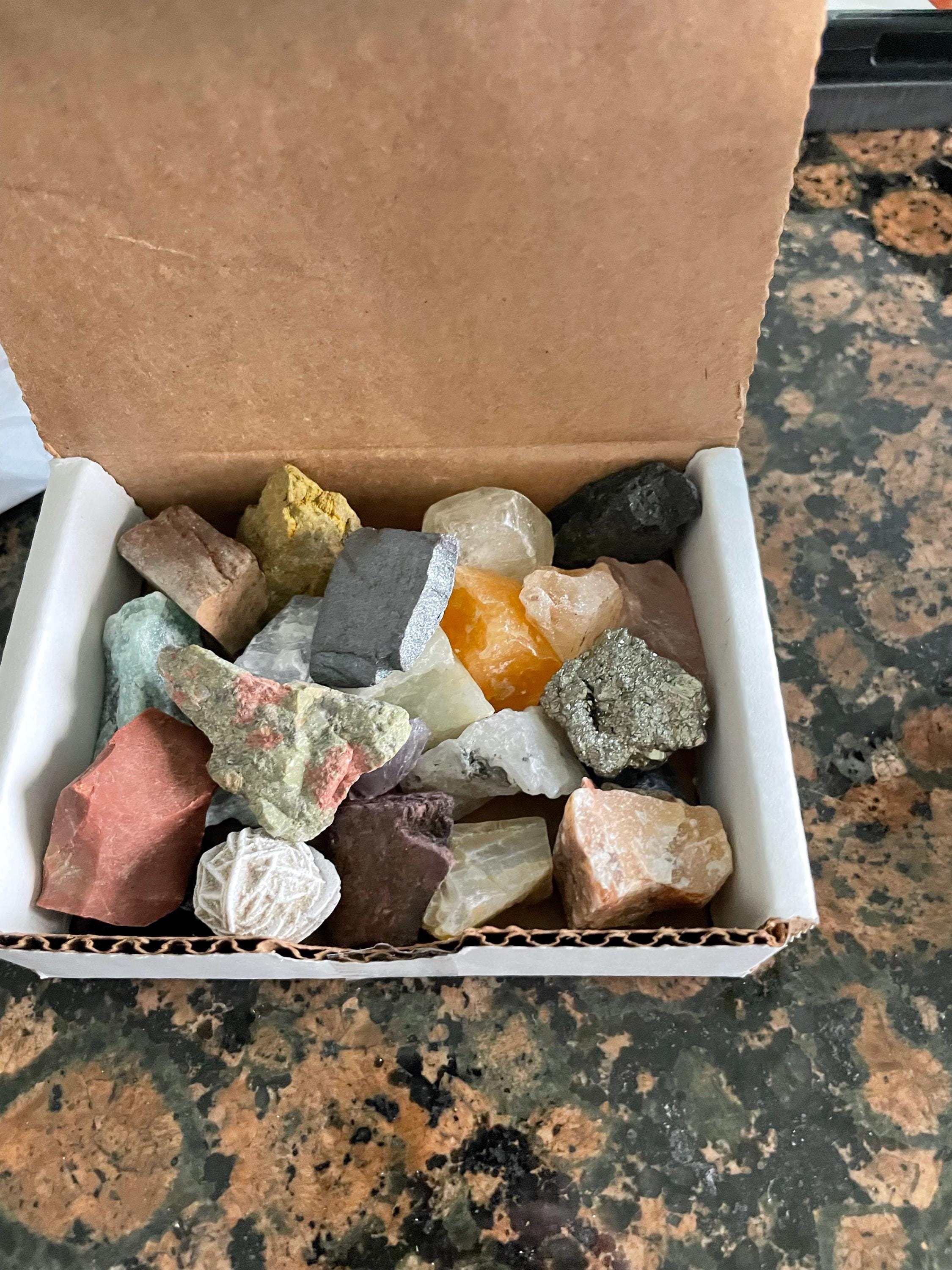 Stones shown are for illustration as these are natural items please expect variance in color and shape from item to item. Not all boxes will contain every stone shown and please do expect some duplicates. Stones supplied will be very similar but not identical and selected at random based on stock on hand at time of order. Posted pictures are to provide an idea of the typical mix you will receive.