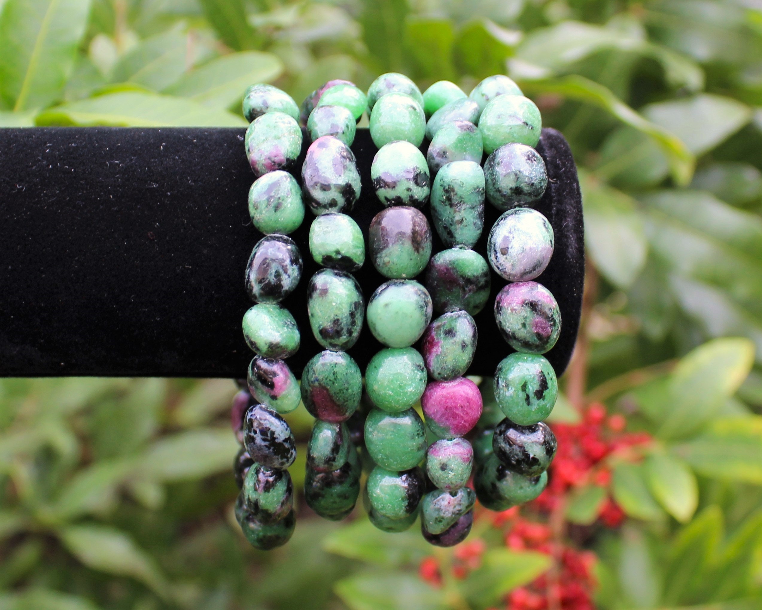 A beautiful bracelet crafted from beautiful Ruby Zoisite tumbled stones. 6-8 mm thick nuggets on a stretchable bracelet, fits most wrists. About 7.5" in size. Great for meditation, healing, Reika or simply wearing!