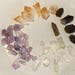 As you can see, I received everything by weight so the quantities of the stones are different. I got five smoky quartz. There are 11 clear quartz. There are six citrine points, and a variety of amethyst points. I have shopped the store many times. I am very happy with the order.