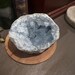 Absolutely in love with this piece. The soft blue tones are even more stunning in person, calm, dreamy, and almost ethereal. The crystal formation inside catches the light beautifully and gives it so much depth. It feels like a little hidden world tucked inside a geode. It has a really peaceful energy and instantly elevated my space. Definitely one of those pieces that you keep coming back to look at.