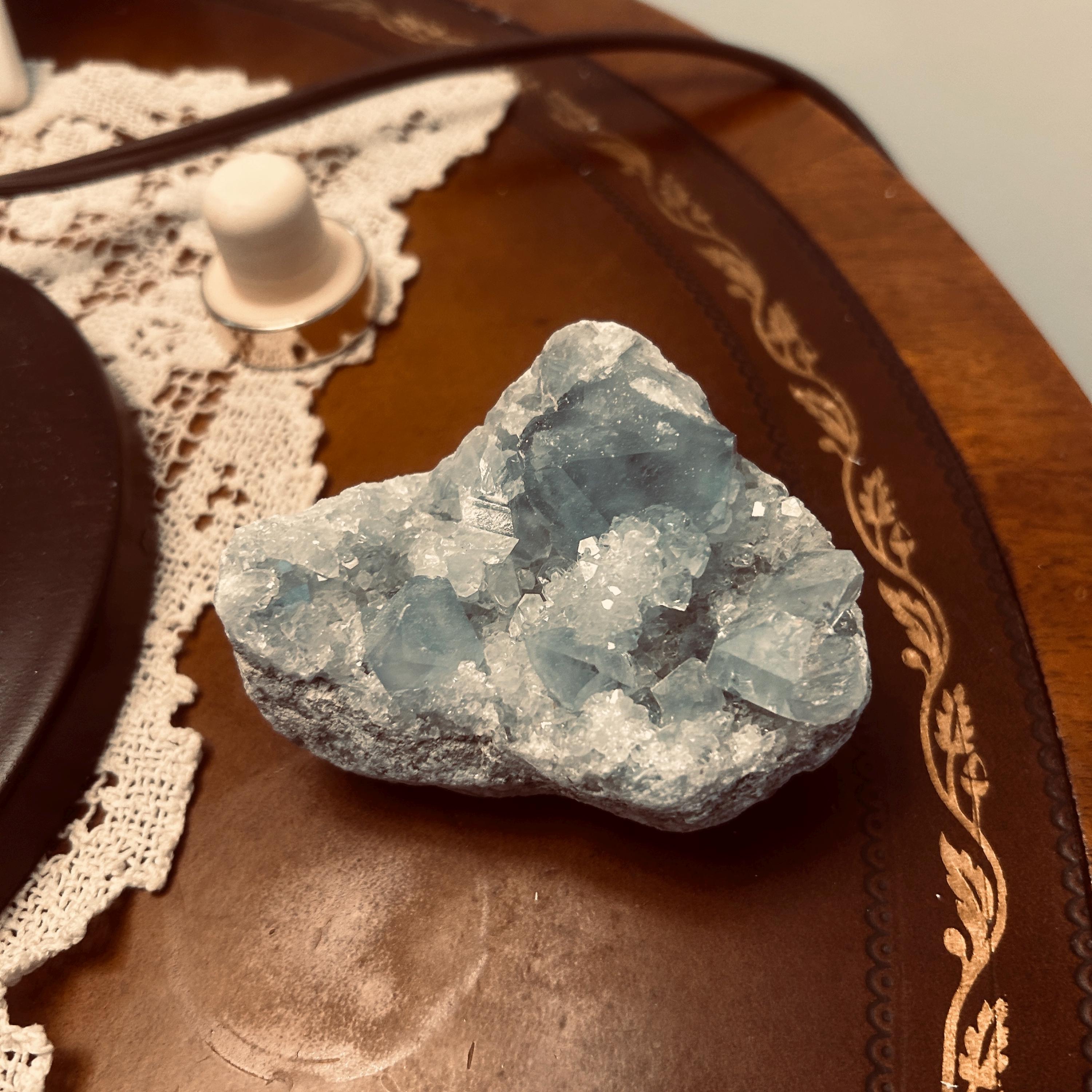 I love this blue celestite geode. It sparkles and shines and is good size for my altar.