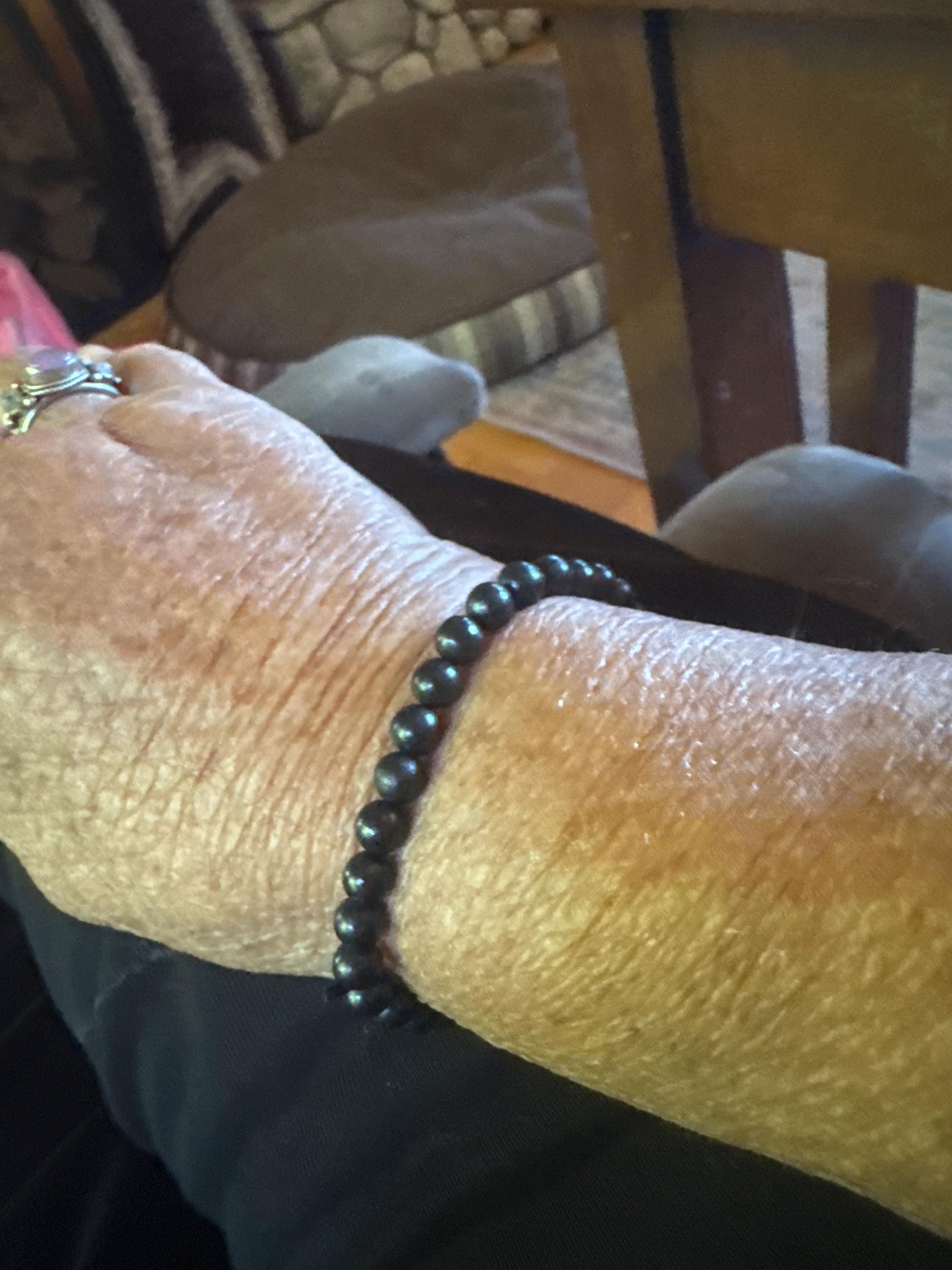 A beautiful bracelet crafted from genuine polished Shungite beads. Choose 6 mm or 8 mm thick beads on a stretchable bracelet, fits most wrists. About 7.5" in size. Great for meditation, crystal healing, Reiki or simply wearing!