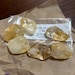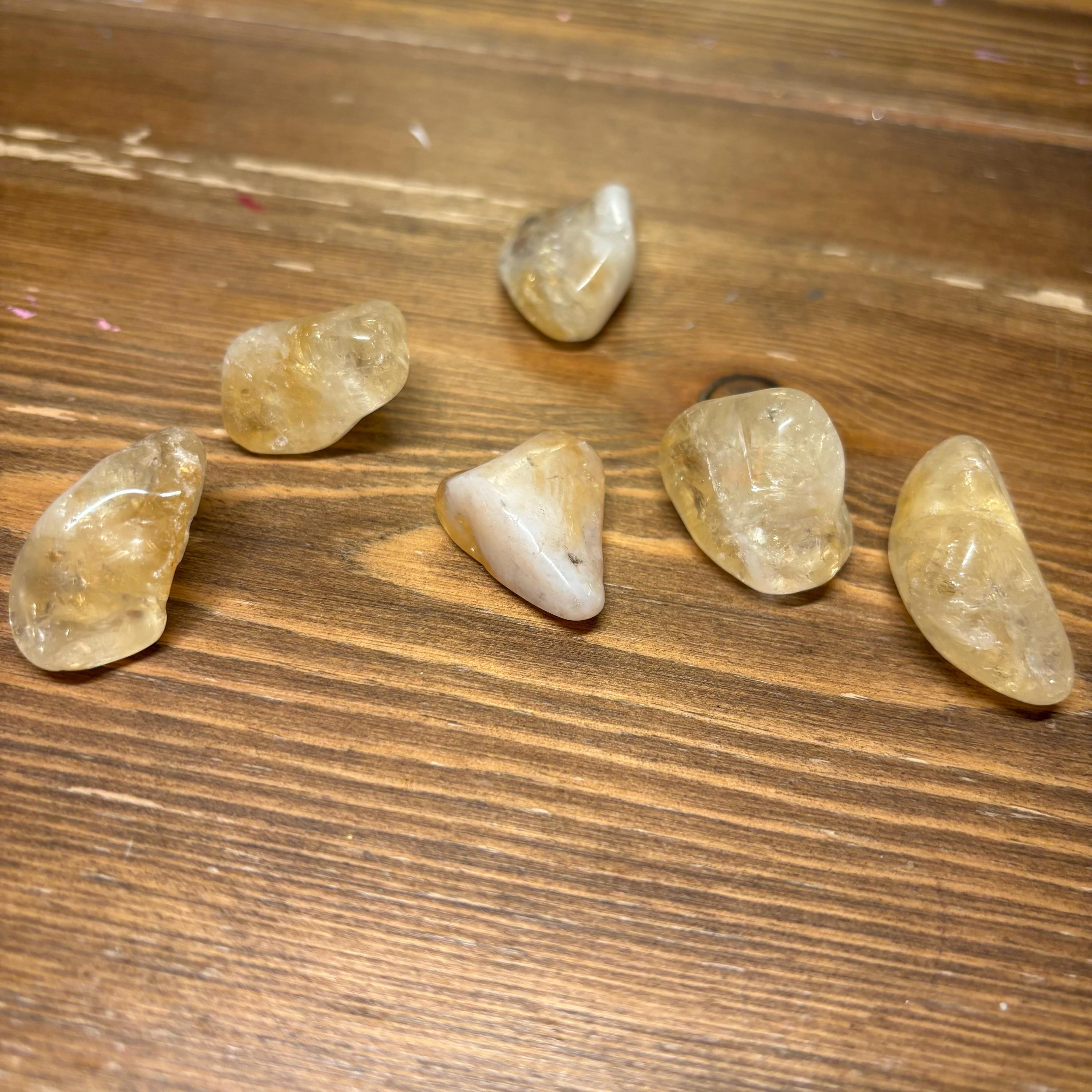 Beautiful Citrine Tumbled Stones, small/medium size, about 0.5" - 1” +/-. This golden Citrine, like almost all Citrine sold today, has been heat treated thus making it a very useful strong and powerful stone in metaphysical work. Associated with the Solar Plexus, Sacral and Root Chakras this crystal can be used to cleanse all the Chakras. Citrine is wonderful for transmuting negative energy and for protection however it is widely known as a ‘cash stone’ to generate abundance when placed in the far left corner of a home. A wonderful powerful and versatile stone.