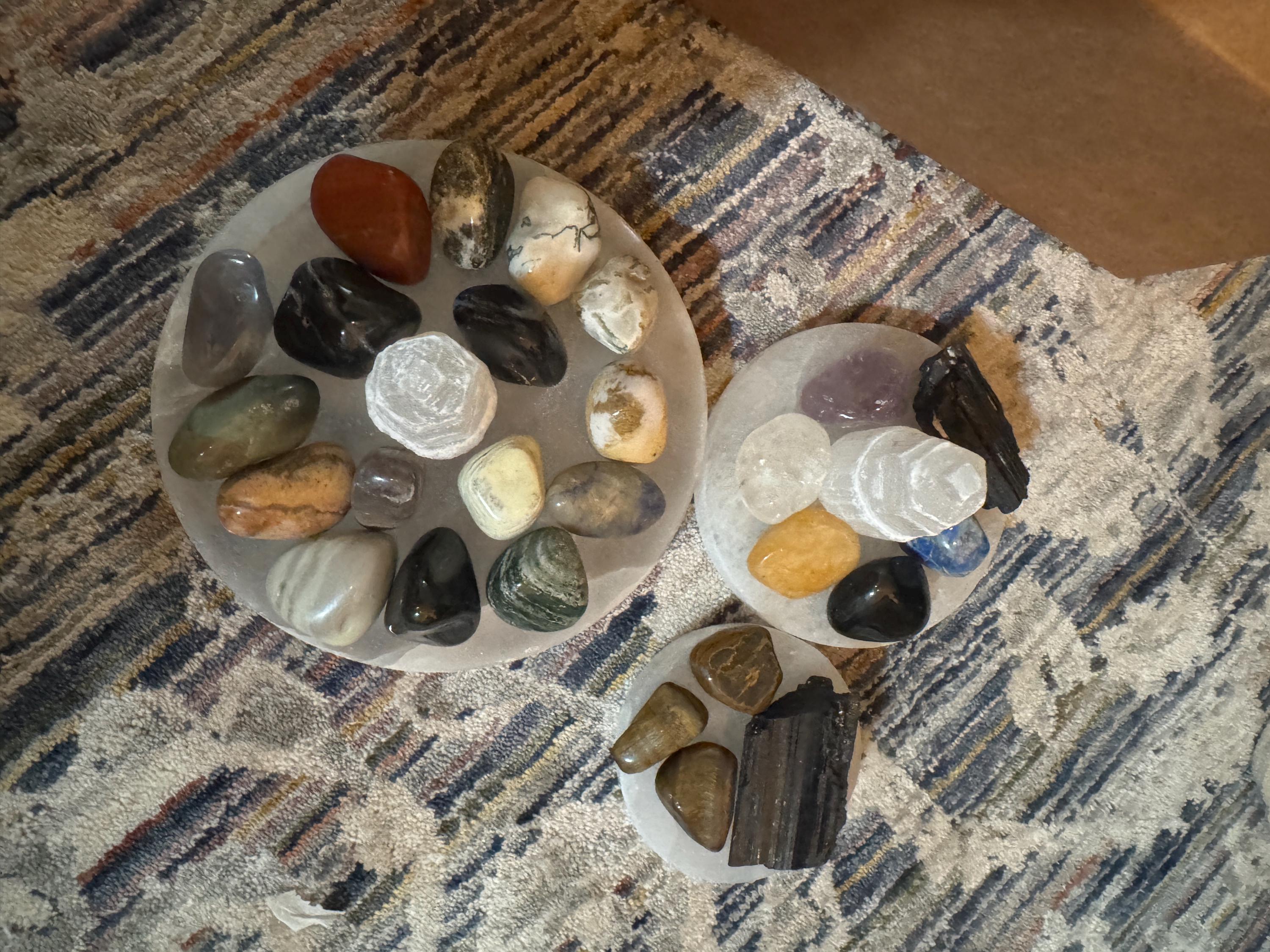 Stones shown are for illustration as these are natural items please expect some variance from item to item. Stones supplied will be very similar but not identical. Posted pictures are to provide an idea of the typical mix of sizes and shapes available. The vast majority of our crystals are natural but we do stock a small number of man-made / altered stones - generally where no such stone exists in nature - some may be included in the assortment.