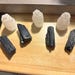 4 White Mini Crystal Selenite Towers / Skyscrapers / Icebergs, each about 2.2" to 2.4" tall and 4 pieces of 'A' grade 'Extra' quality Rough Black Tourmaline.