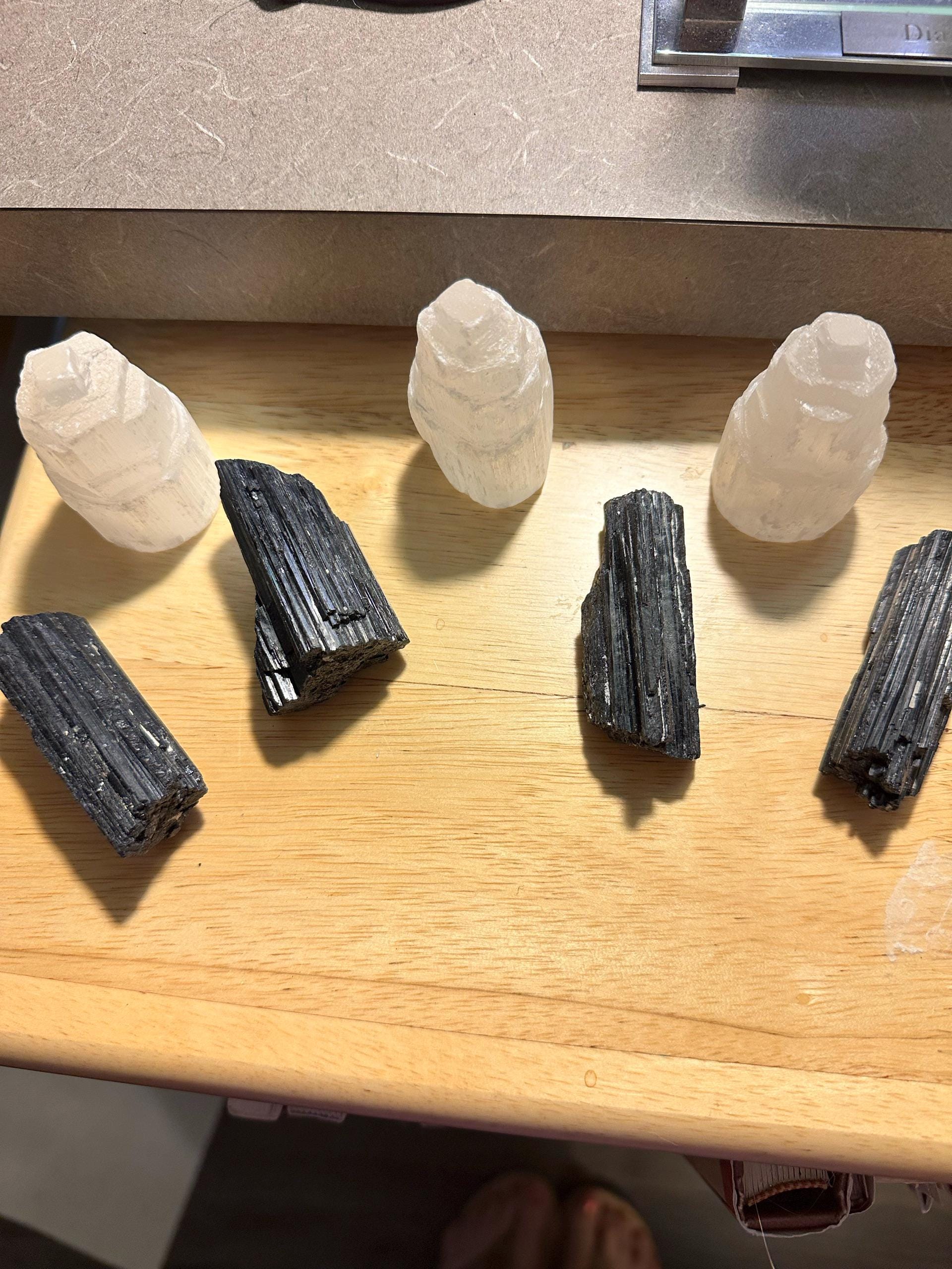 This set of selenite & black tourmaline was exactly what I wanted. All pieces are quite large & substantial. It more than met my expectations!