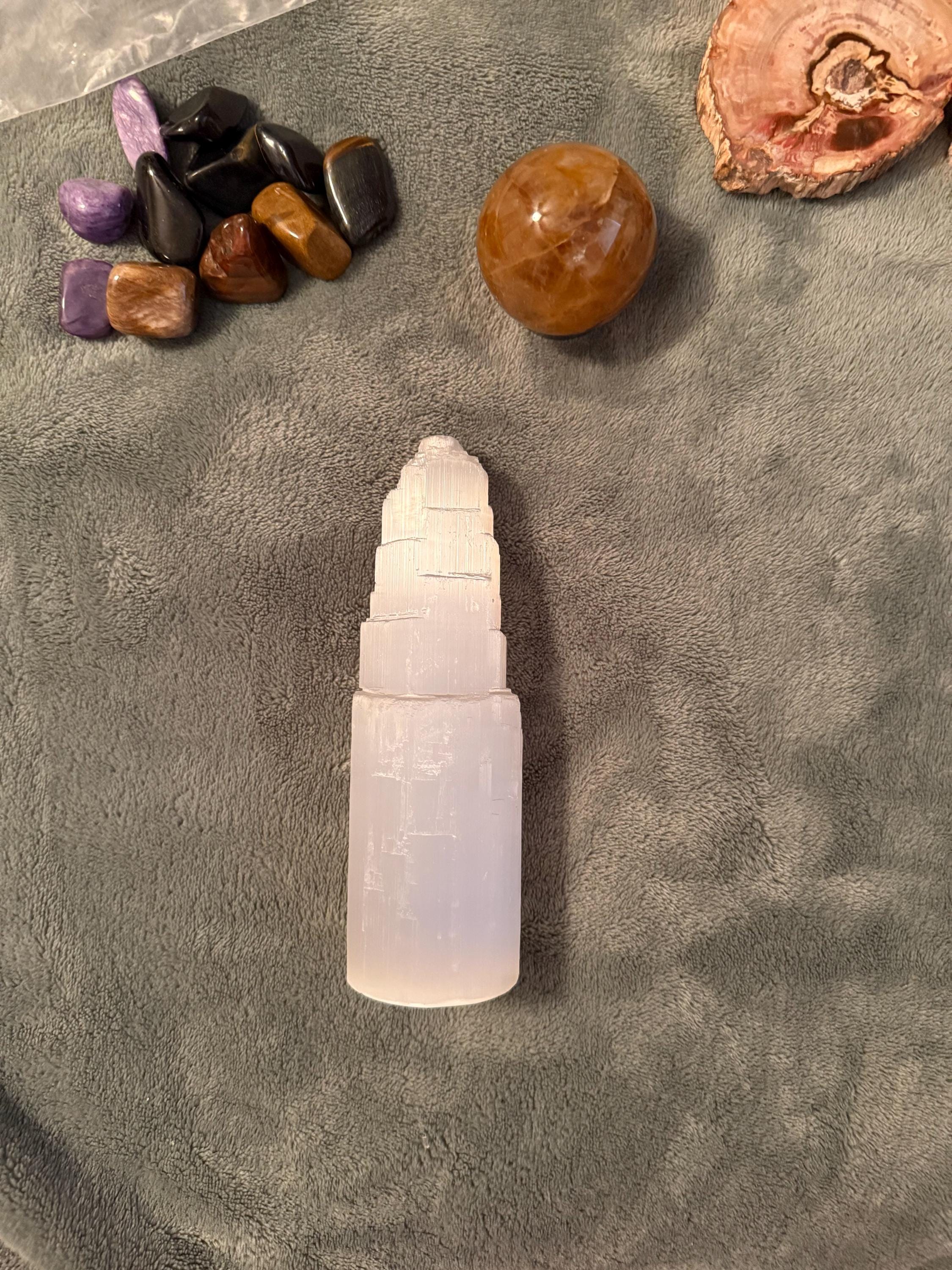 I love selenite towers. Now I have one for my bracelets on my right wrist & one for my left wrist bracelets. This is my 4th from them & they are all perfect. You can’t go wrong with their products.