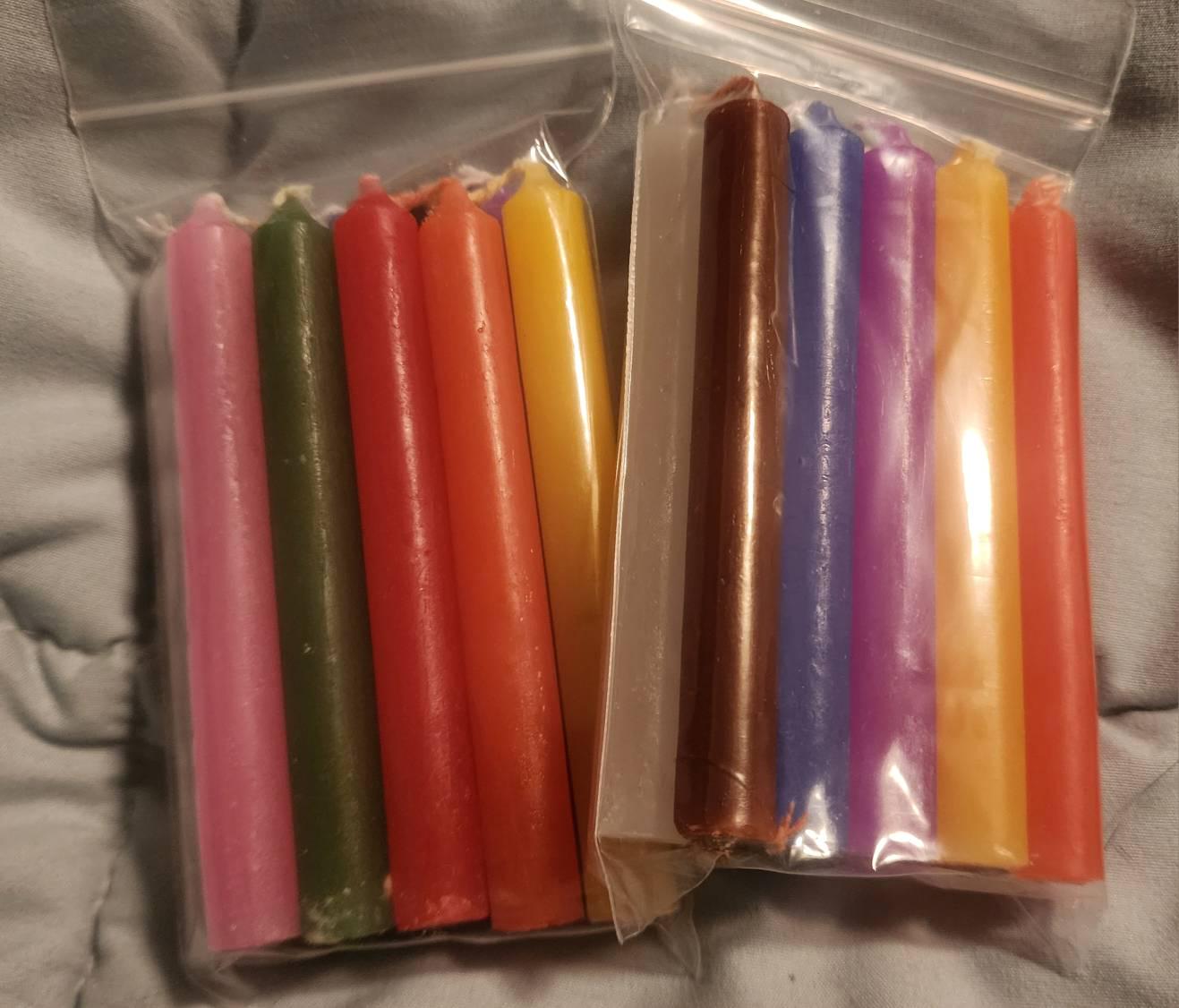 Please be aware that on occasion the candles may come with minor 'dings' or marks. We pack them together in one bag so a color may rub against another color. We understand they are not 'perfect' but they are great, low cost, candles suitable for a variety of your ritual needs!
