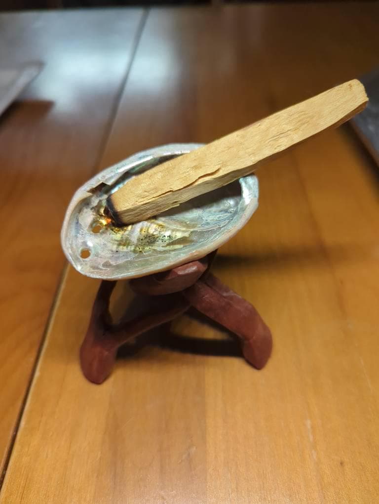 A super value set containing a small 3" Abalone Shell, and a 4" Wooden Tripod Stand. This set is ideal for use burning smaller sage sticks or loose sage but can also be used for incense, resins or as a small display holder for crystals, etc.