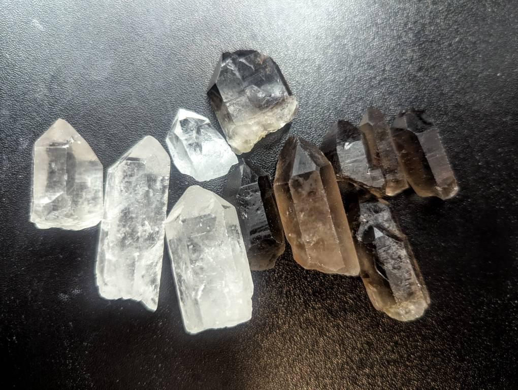 Stunning Smoky Quartz Points and Clear Quartz Points, Mixed Lots. Size will vary by piece but most are in the range 0.75" - 1.75".