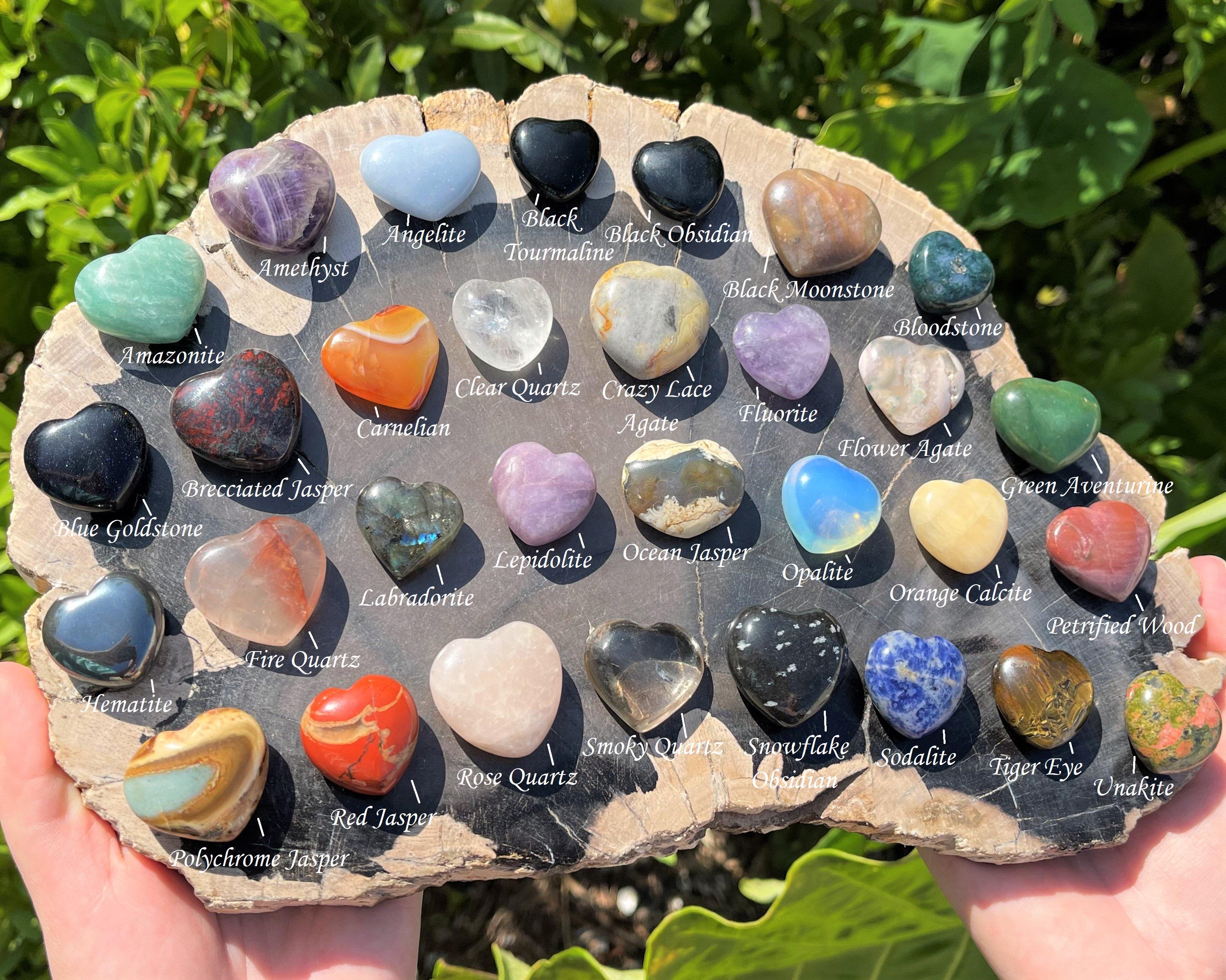 About Crystal Hearts: Crystal Hearts are carved from a very wide range of minerals, crystals, and gemstones that are found in nature - and an odd few types of hearts that are man made (Opalite, Goldstone and one or two others). They are perfect for not only relationships (old and new!) but also self love. Many Keep them at home and at work and also carry them with them throughout the day - just looking at them and feeling their energy can make you feel better! Great for both chakra work and meditation, crystal hearts help you to focus not only on your emotions but also on your thoughts - they bring calmness and serenity - healing benefits indeed!