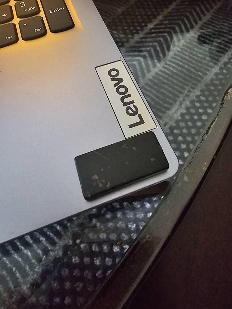 Love these! I attempted to purchase a version of these elsewhere (not on Etsy) and they arrived broken. Not these! They were packaged safely and came completely intact. The sticker holds well on my Kindle, iPad and laptop.
