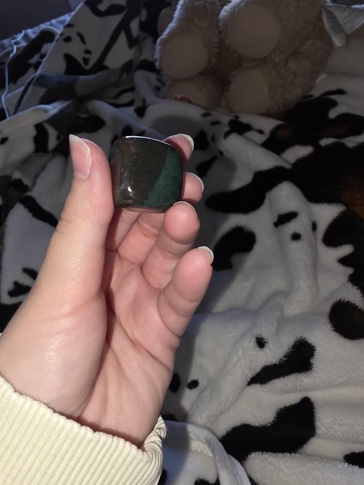 Bloodstone has long been used for it's healing properties. It is believed by many to cleanse the body and ground negative energy. Used to detoxify it is believed to increase energy and vitality. Size ranges from 0.75 - 1" +/-.