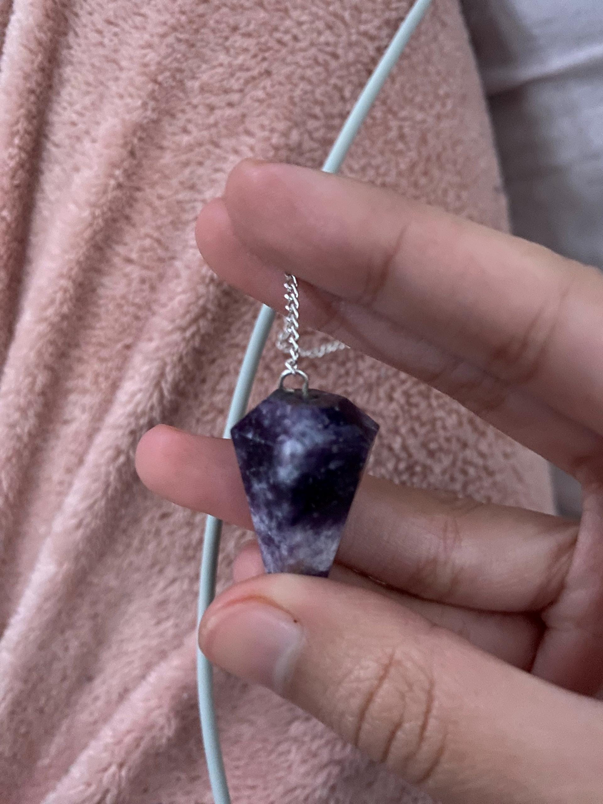 love the crystal but the part where the chain is attached is uneven and not in the center which causes the pendulum to tilt slightly when holding it up 😞 so far i dont think it’s been effecting my answers but i’ll see with time