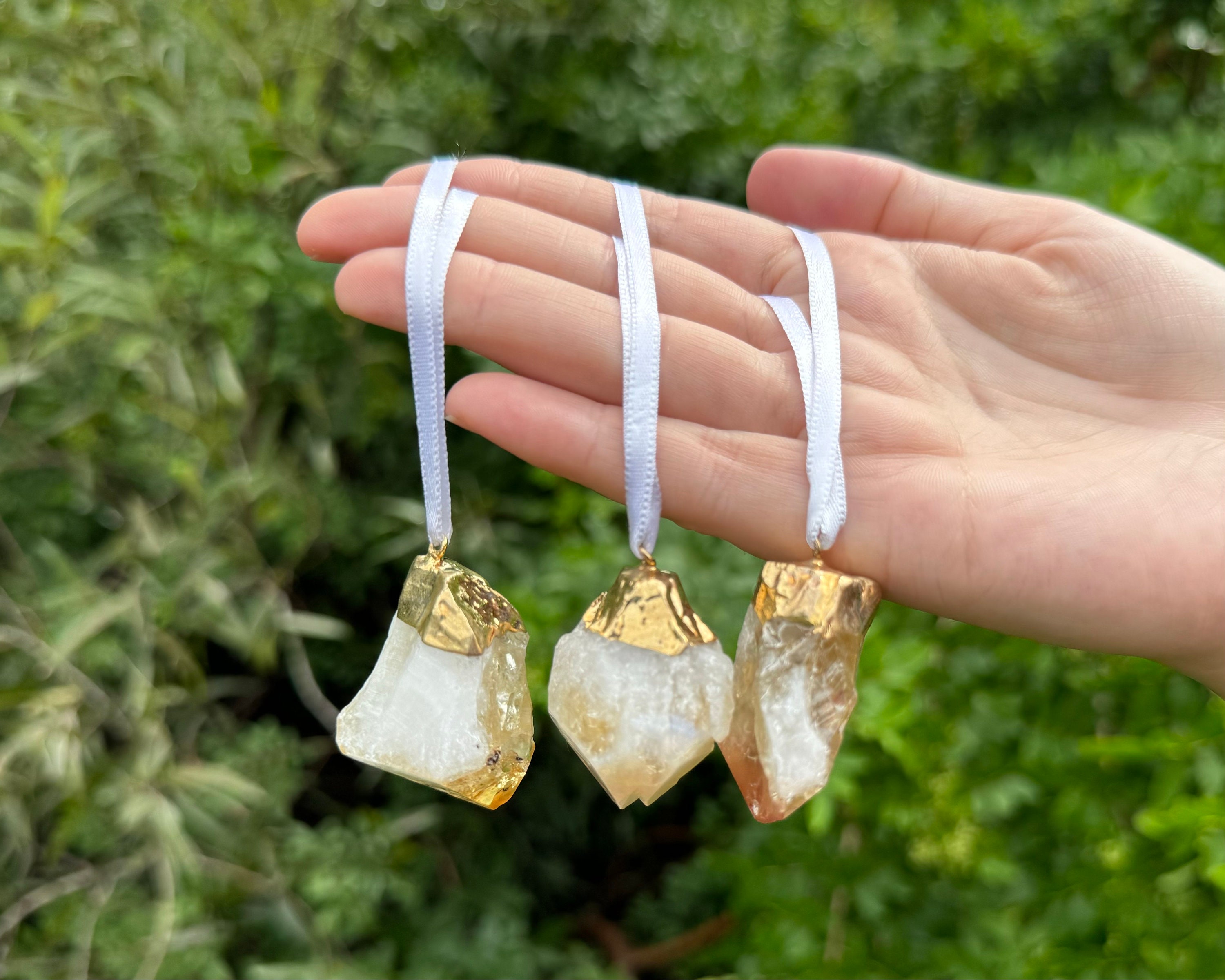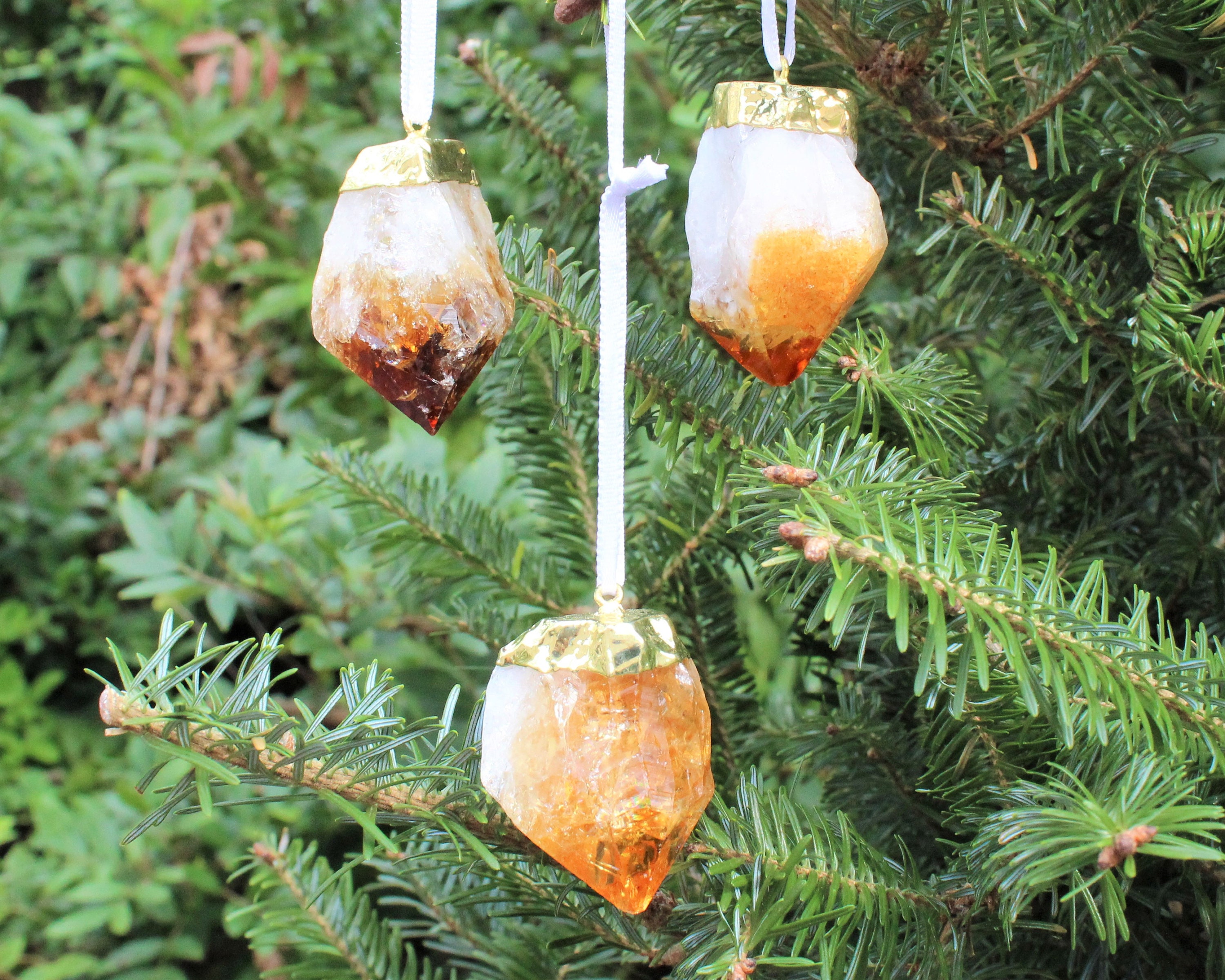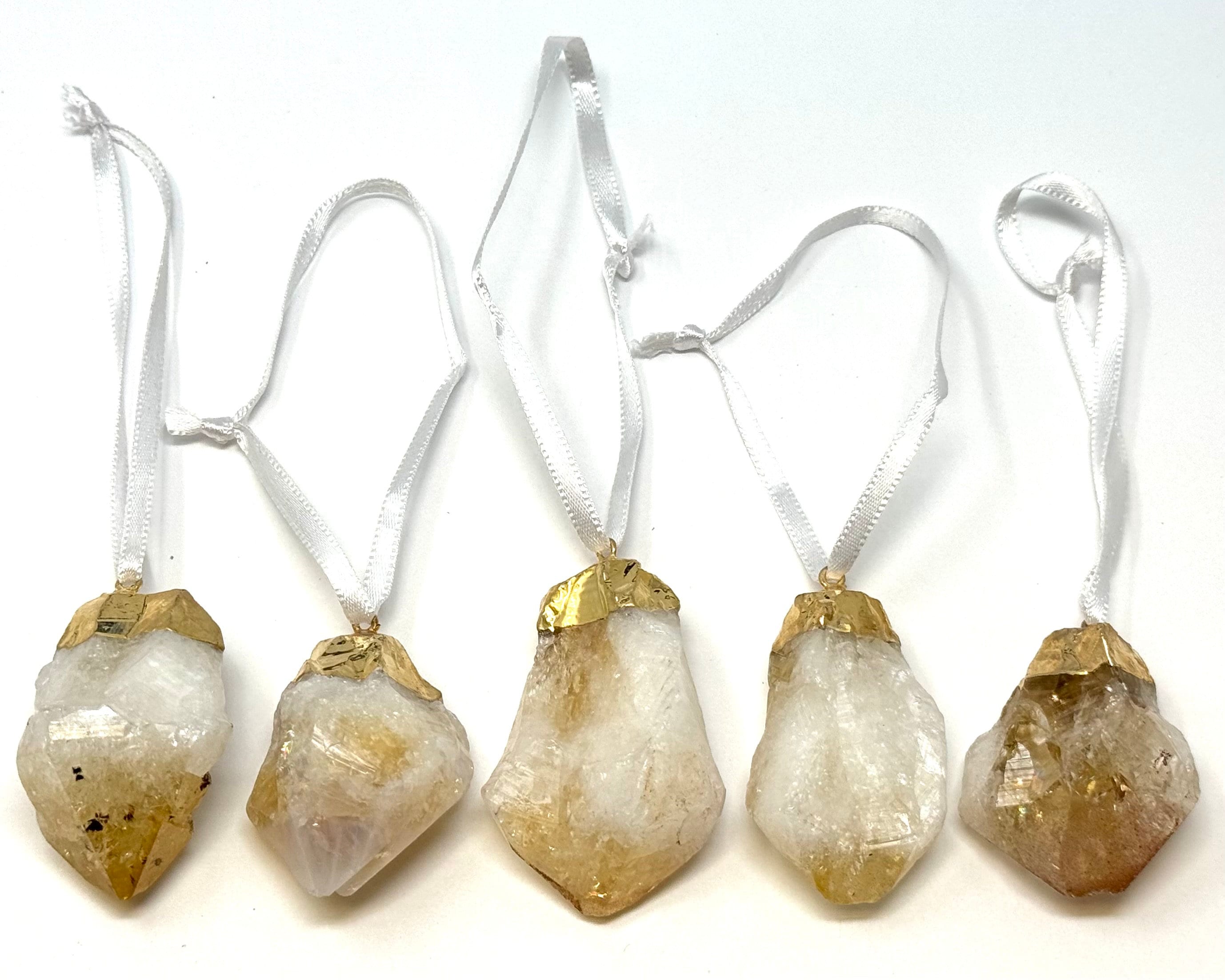 Beautiful Citrine Crystal Point Ornaments with Gold Plated Tops. Great for Holiday time decoration or even just to hang around the house / person for the wonderful beauty and energy! You can hang these wonderful Citrine crystals around your home all year long!