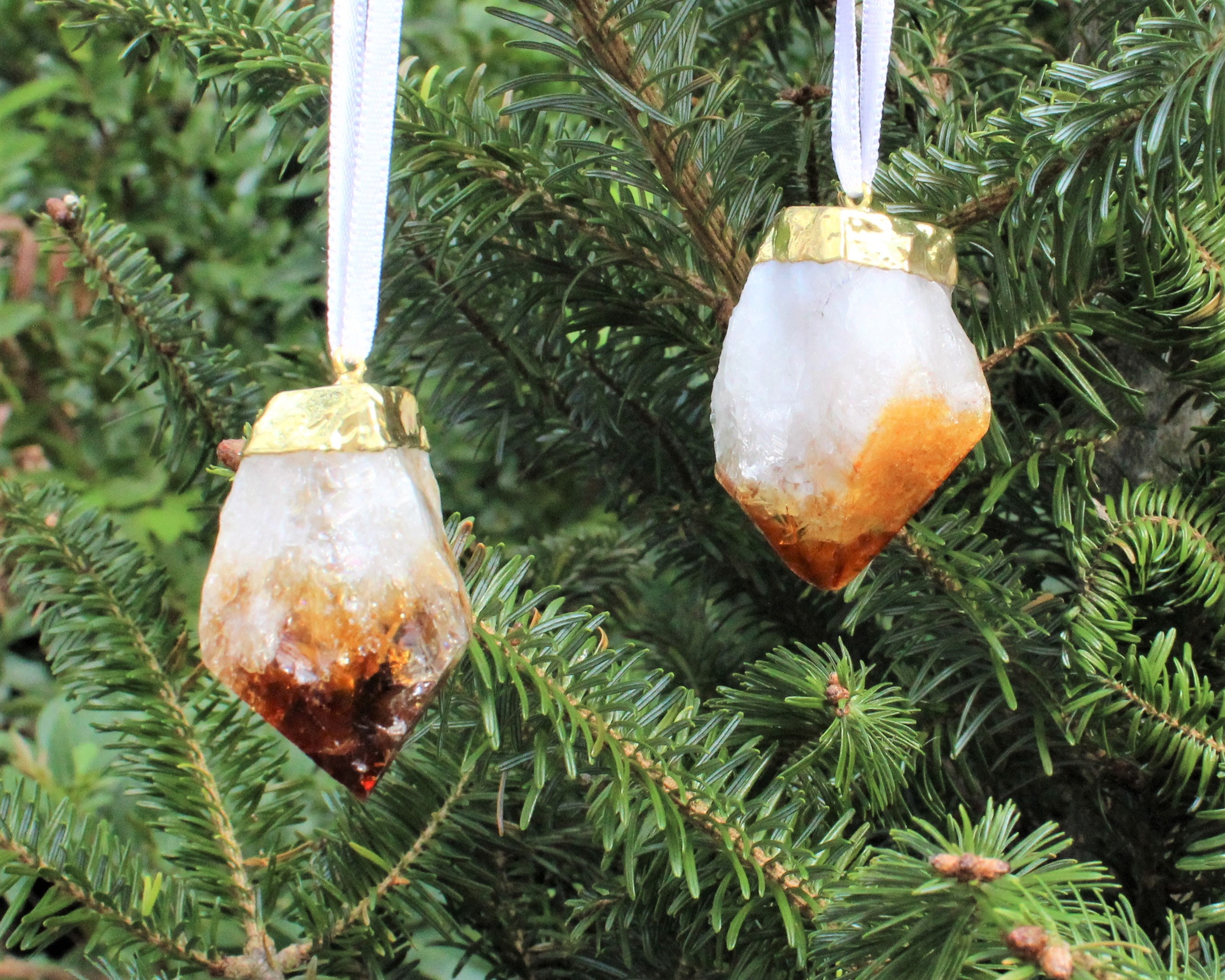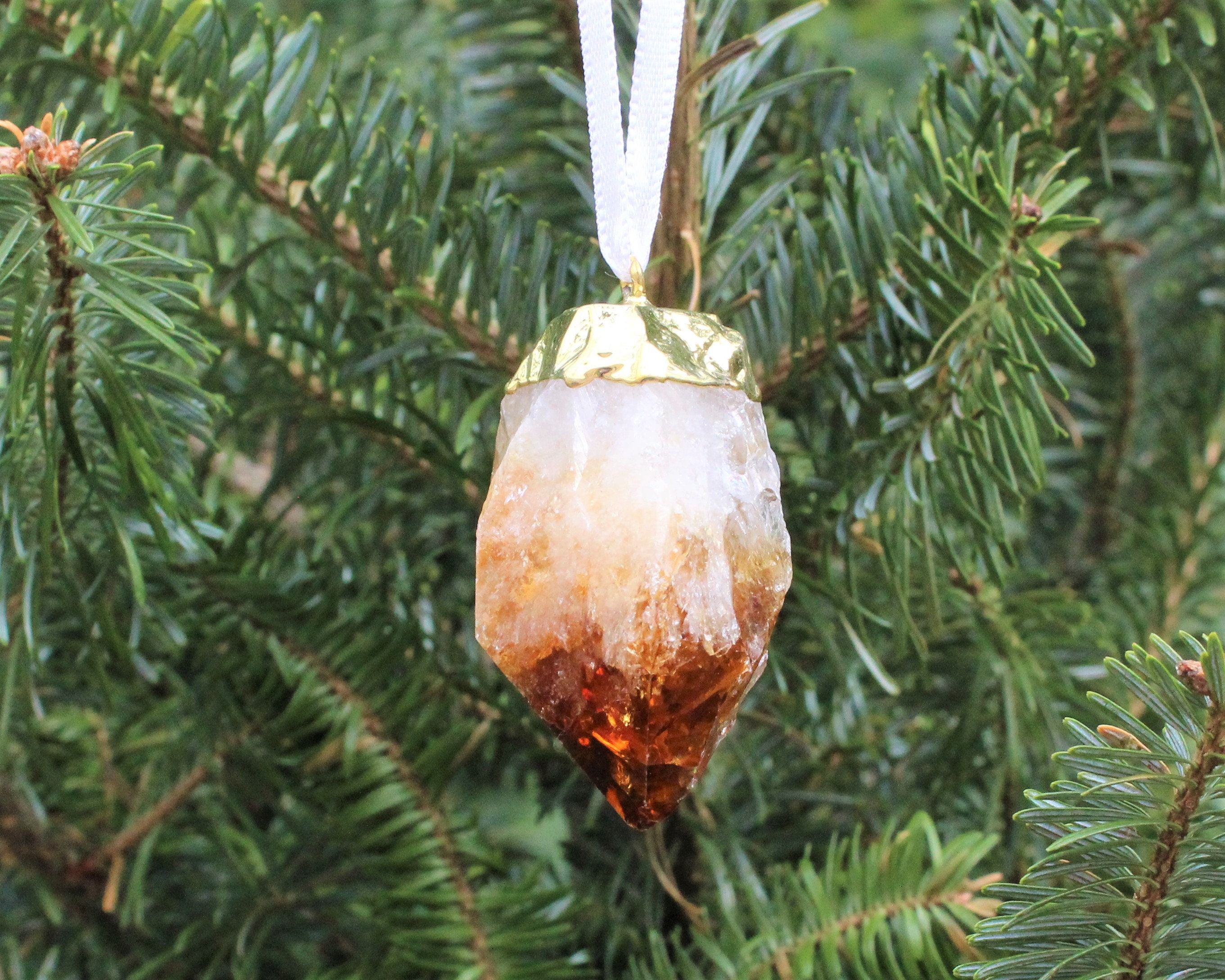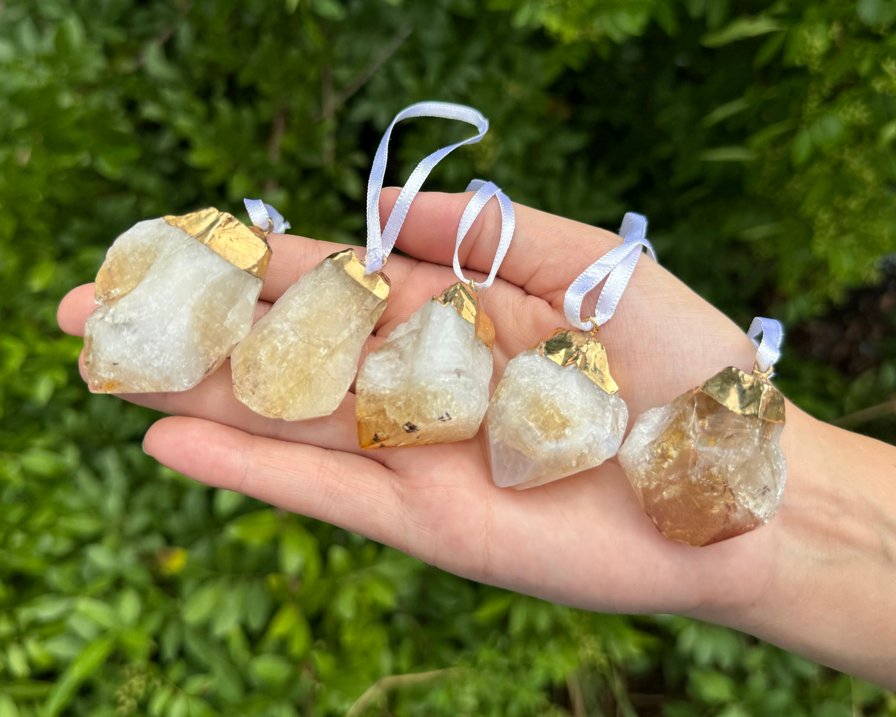 Beautiful Citrine Crystal Point Ornaments with Gold Plated Tops. Great for Holiday time decoration or even just to hang around the house / person for the wonderful beauty and energy! You can hang these wonderful Citrine crystals around your home all year long!